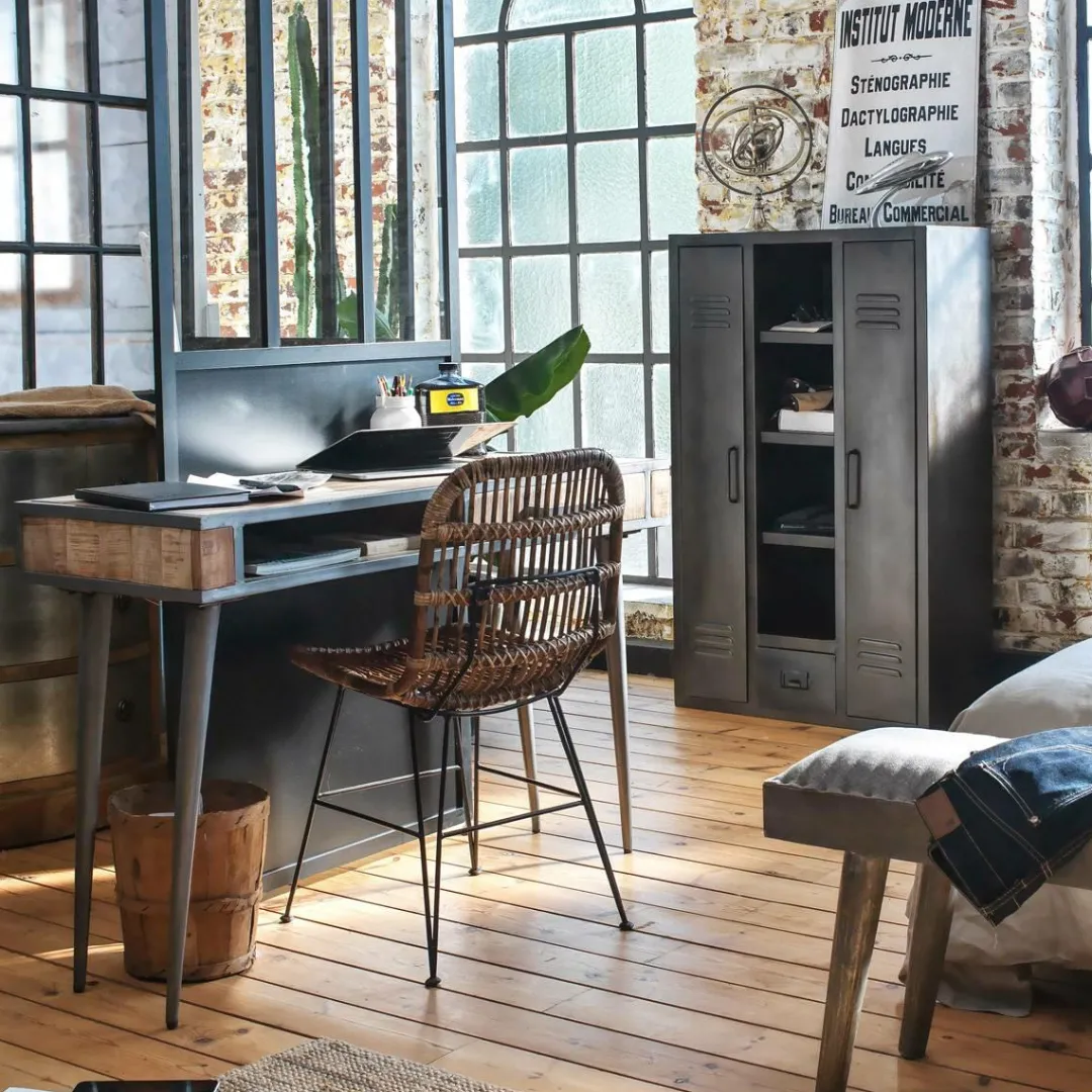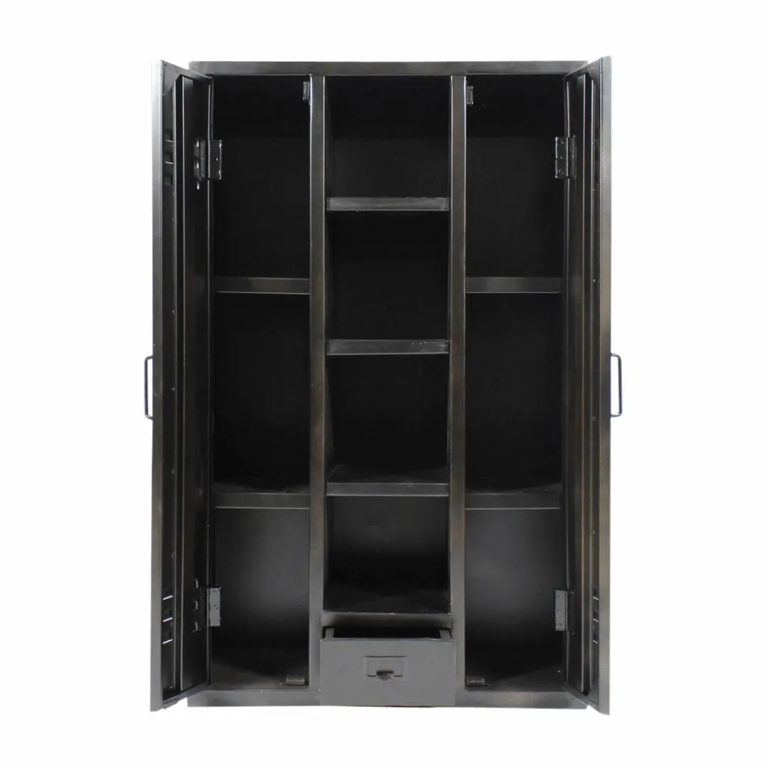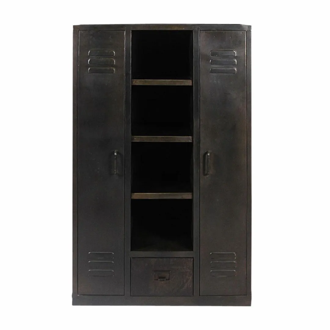 Cette armoire industrielle en métal noir saura se rendre indispensable grâce à ses nombreux rangements ingénieux. Constituée de deux grands casiers verticaux, un petit casier bas, ainsi que de trois étagères centrales, cette armoire industrielle vintage trouvera autant sa place dans votre chambre que dans votre salon. Son style industriel donnera charme et caractère à votre pièce.