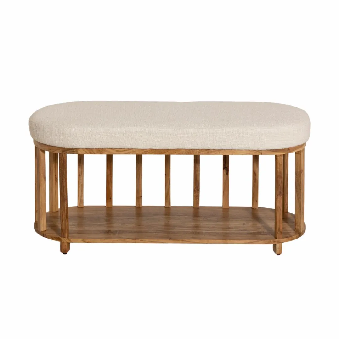 Polyvalent, il s’installe aussi bien dans une entrée, en bout de lit ou dans un salon, où il peut faire office d’assise supplémentaire ou de meuble déco. L’étagère basse intégrée offre un rangement discret et pratique pour des chaussures, des paniers ou des magazines. Une pièce élégante et fonctionnelle qui s’intègre harmonieusement dans un intérieur naturel et tendance.