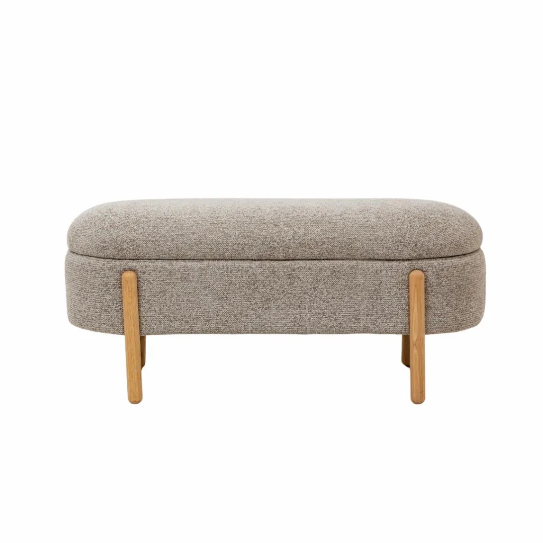 Le banc Nerio en bois de pin et tissu bouclette gris clair est une pièce aussi pratique que décorative. Son assise généreusement rembourrée en bouclette offre un confort agréable, tandis que son piètement en bois clair lui confère un style épuré et chaleureux, idéal pour sublimer une entrée, une chambre ou un salon.