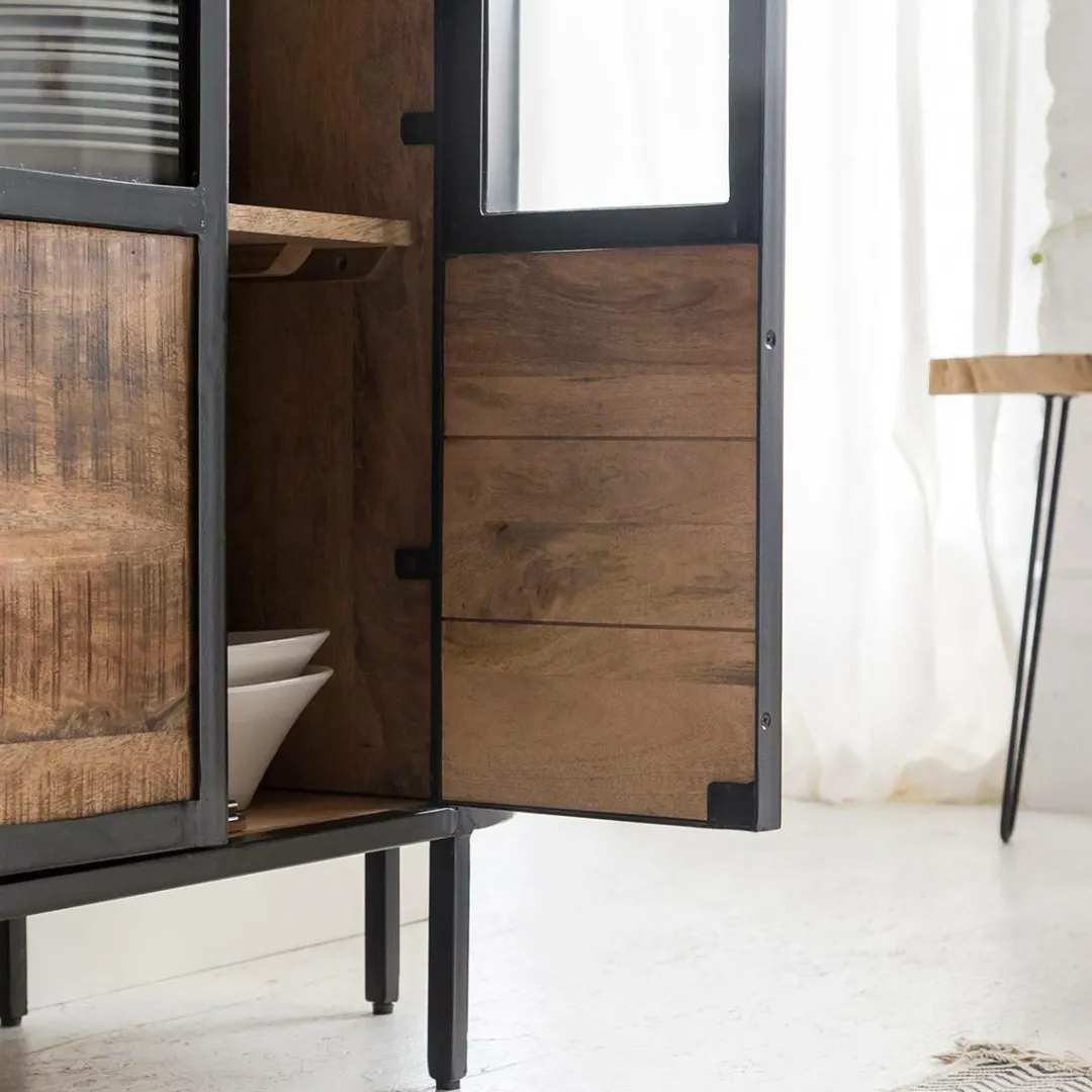 Très fonctionnelle, cette bibliothèque industrielle conviendra aux petits comme aux grands espaces grâce à ses dimensions de 90 cm de largeur et 168 cm de hauteur. Elle sera votre meilleur allié pour décorer et ranger ! Celle-ci est l’alliance parfaite entre le bois massif, le métal et le verre. Ses 3 matériaux de qualité en font un meuble solide qui vous accompagnera durant de longues années.