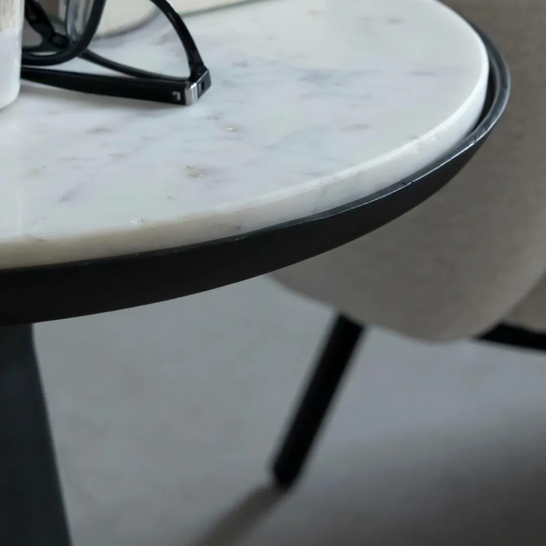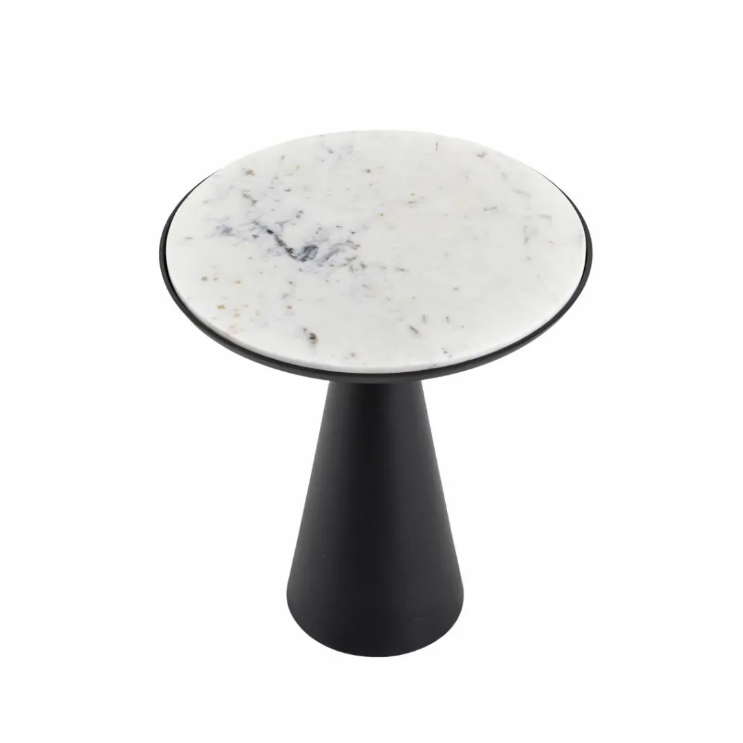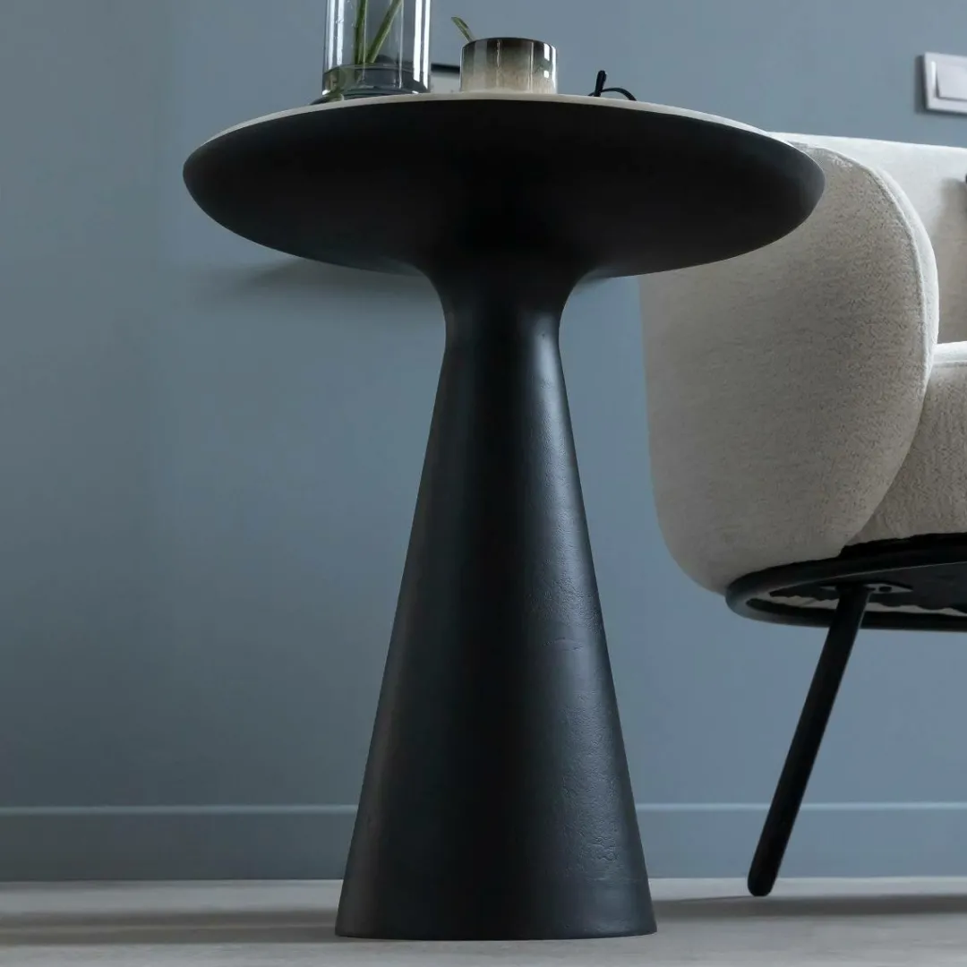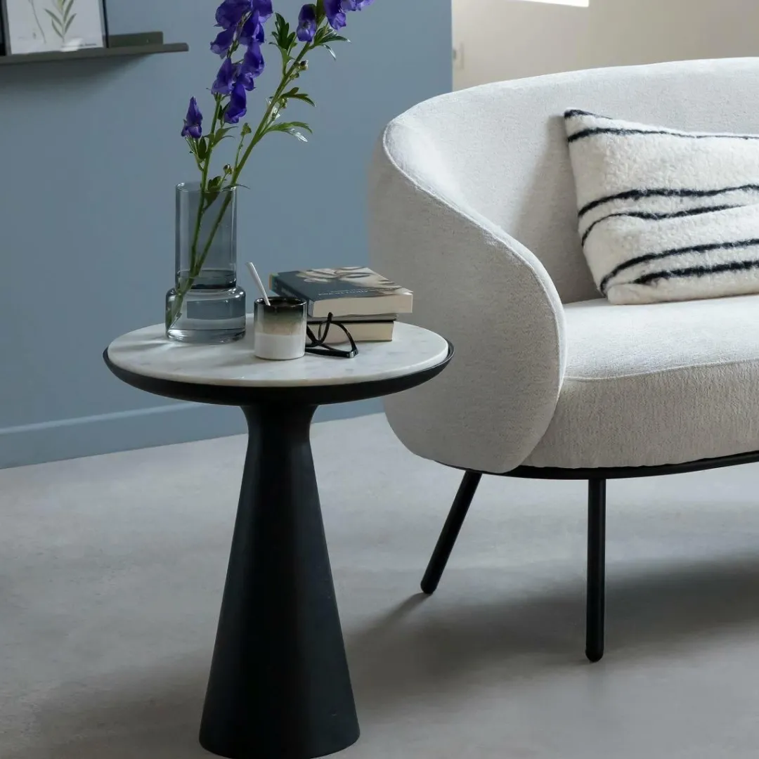 Ce bout de canapé séduit par son design élégant et sa combinaison raffinée de matériaux nobles. Son plateau en marbre apporte une touche sophistiquée et unique grâce à ses nuances naturelles, tandis que son piètement en aluminium noir en forme de cône lui confère stabilité et modernité. Ensemble, ils créent une pièce aussi esthétique que fonctionnelle, qui attire immédiatement le regard.
