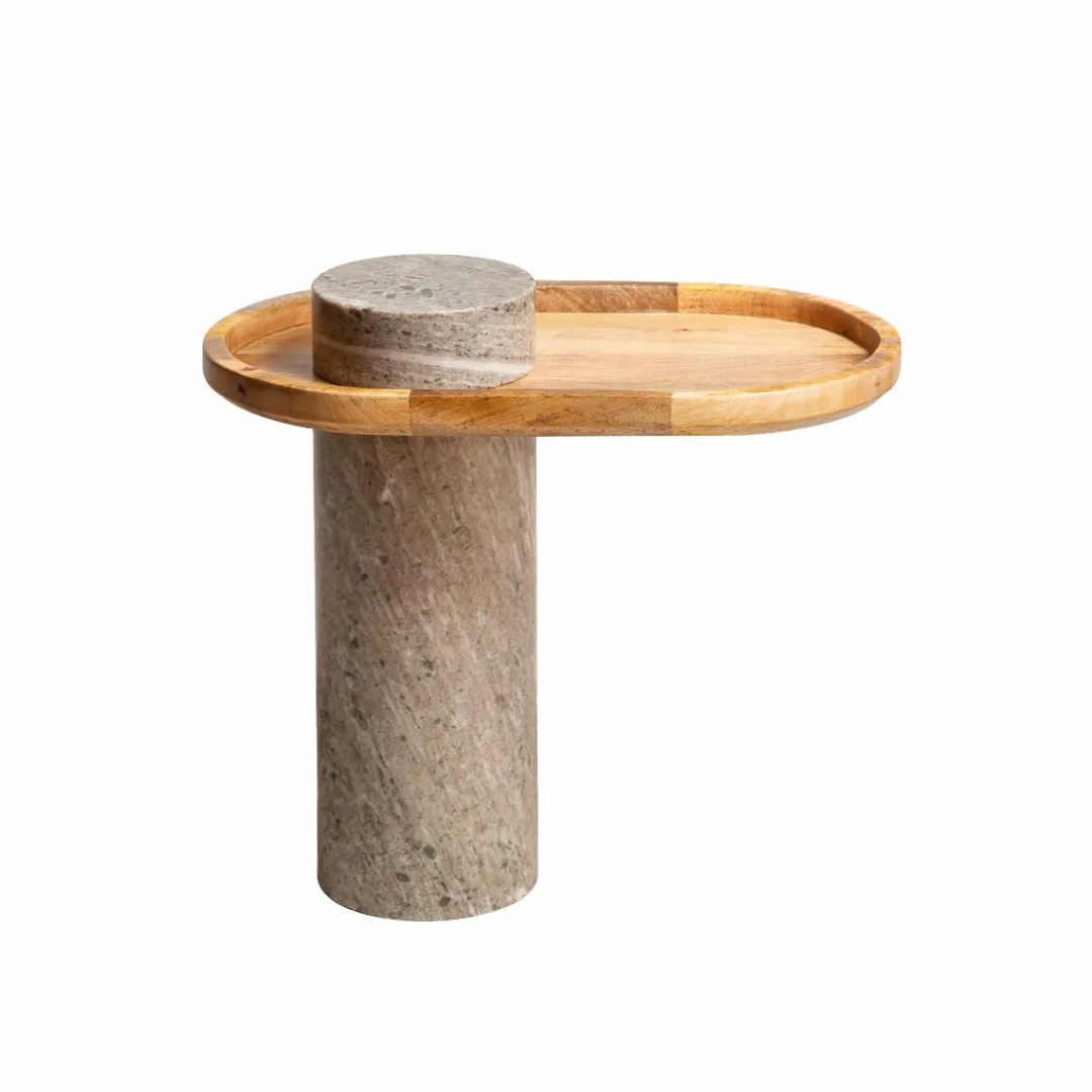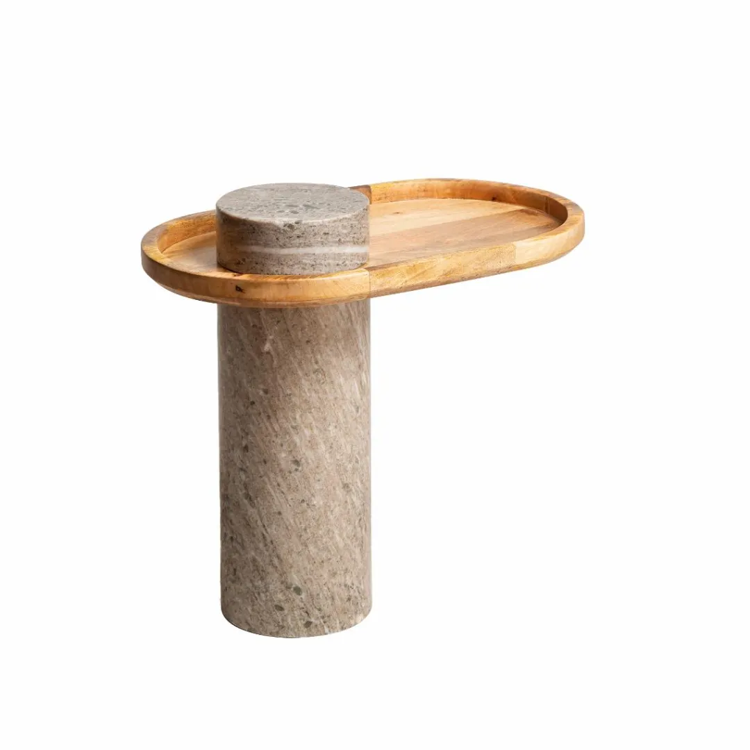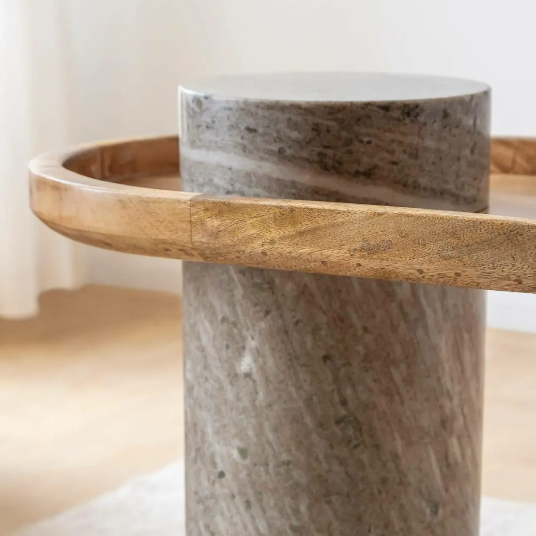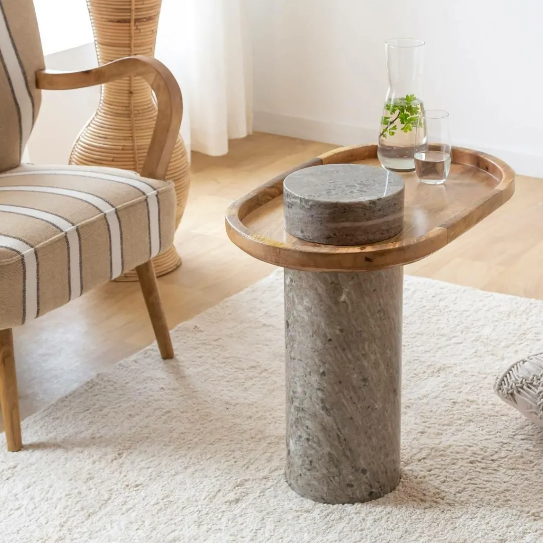 Cette pièce étonnante présente un aspect à la fois luxueux et contemporain qui rehaussera n’importe quel salon. Fabriquée en bois de manguier et finie dans un élégant marbre gris, ce meuble Andréa ajoute un élément de sophistication à votre décor. Avec son design unique et polyvalent, il peut être utilisé comme bout de canapé ou table d’appoint. La juxtaposition de la base en marbre et du plateau en bois de manguier ajoute de la dimension et de la texture tout en offrant un effet visuel intemporel. Grâce à sa construction robuste et à sa qualité de fabrication, cette table d’appoint vous offre un style et une fiabilité sur lesquels vous pouvez compter. Mesurant 57 cm de hauteur et 65 cm de largeur, cette pièce accrocheuse est parfaitement dimensionnée pour une utilisation fonctionnelle.