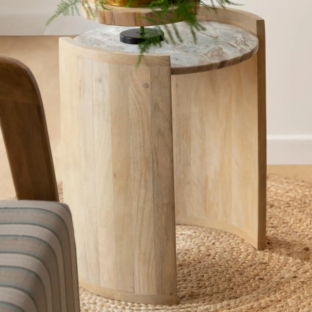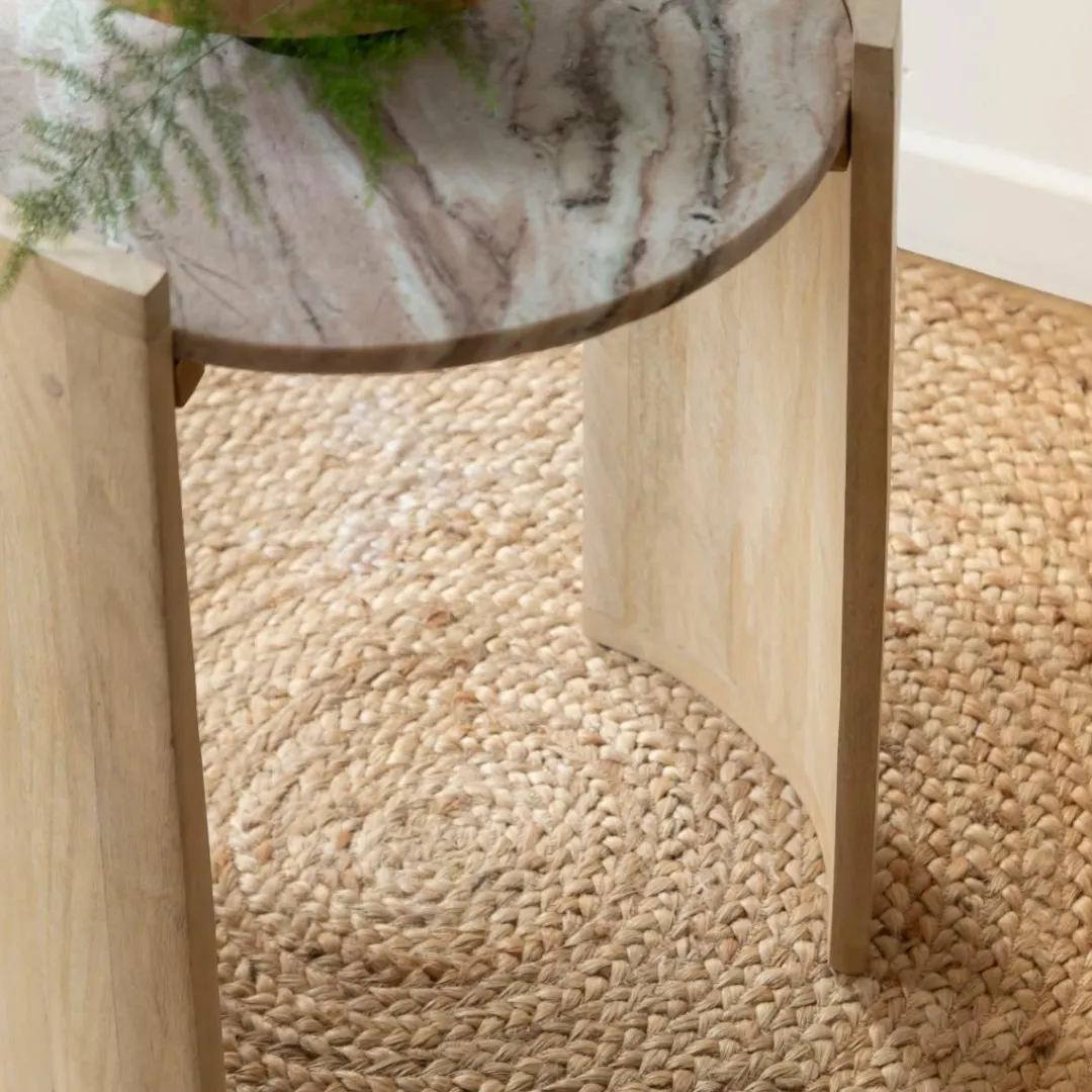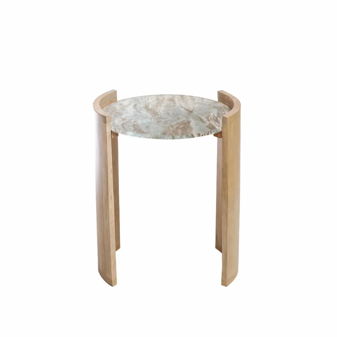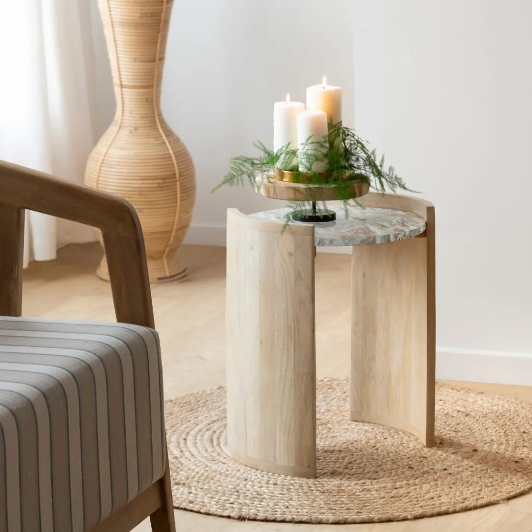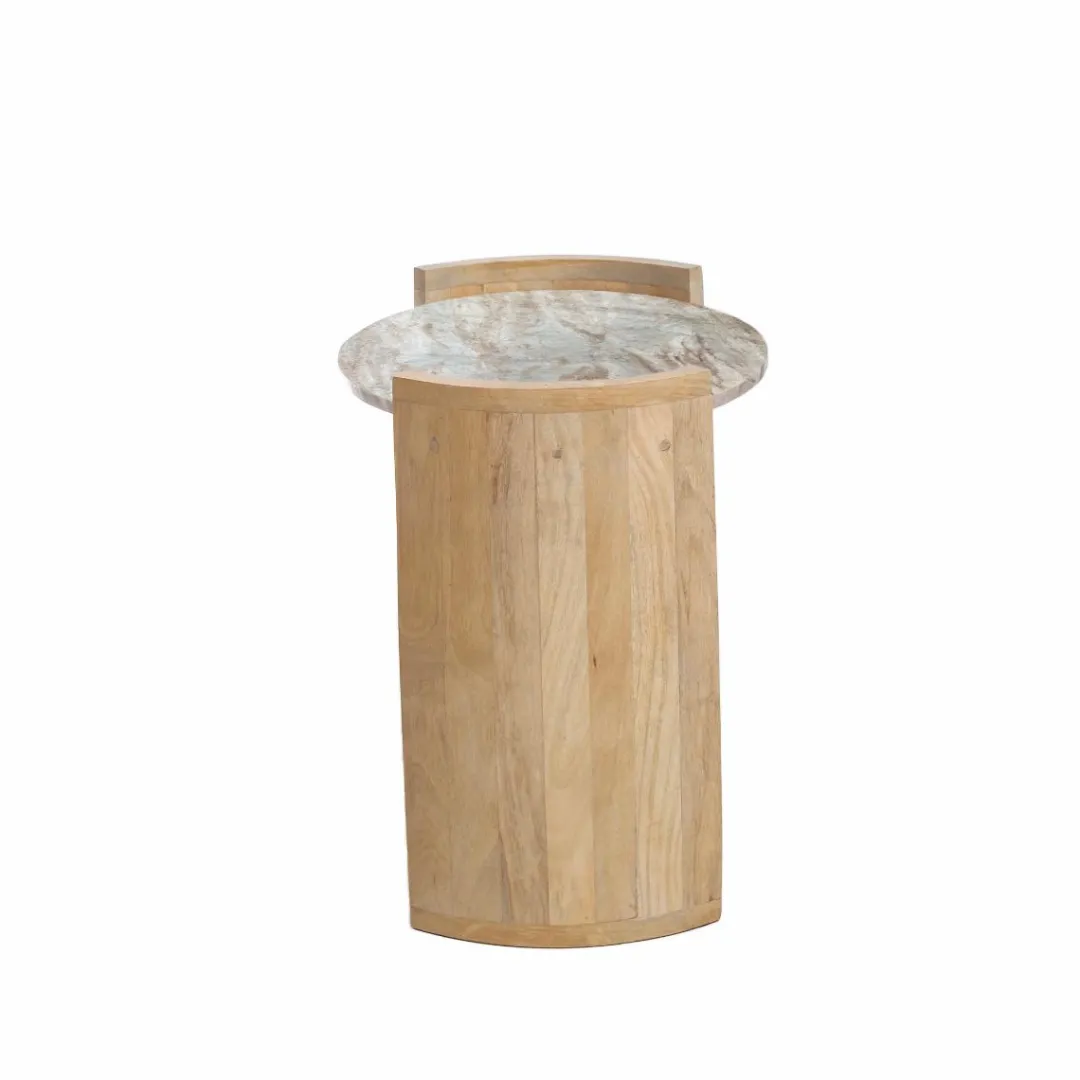 Ce meuble élégant présente un design épuré et moderne avec un plateau en marbre et un pied en bois de manguier. Vous aimerez la façon dont le doux éclat du marbre contraste avec le ton profond du bois de manguier, donnant à votre intérieur une esthétique intemporelle.