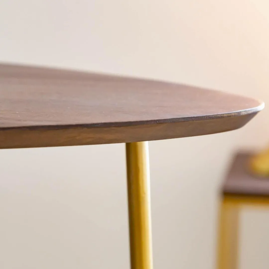 Voici la table d’appoint contemporaine Léon de notre collection Léon – un meuble exquis qui ne manquera pas de donner vie à n’importe quel espace de vie. Méticuleusement fabriquée avec les matériaux les plus nobles, elle associe un pied en métal doré à un plateau en bois de manguier, offrant un look élégant et intemporel avec une touche luxueuse et unique.