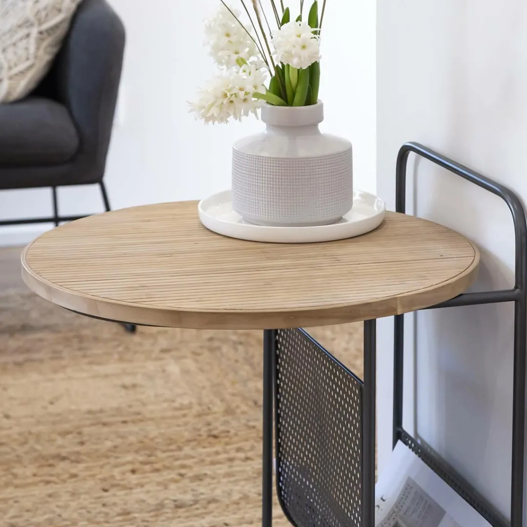 Conçue à partir de matériaux de grande qualité, ce bout de canapé peut facilement remplacer une table basse industrielle. Son plateau en bois de sapin et son piètement en métal confirme son design industriel. Cette alliance entre le bois et le métal fait de cette table basse un meuble entrant totalement dans la tendance actuelle. Nous l’imaginons très bien accompagner un canapé d’angle. L’un de ses principaux avantages est qu’il vous permettra de ranger vos objets du quotidien tels que vos télécommandes ou même votre livre. Pratique, si vous souhaitez y avoir accès sans avoir à vous lever !