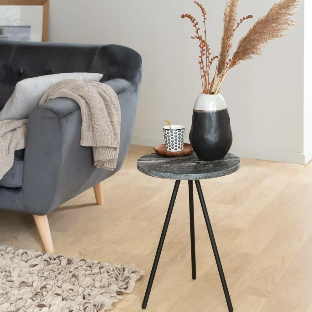 Voici la table d’appoint Eva, qui s’intègre parfaitement dans toutes les pièces de votre maison ! Ce meuble de style contemporain est doté d’un magnifique plateau rond d’une épaisseur de 2cm, en marbre, dont les nuances de noir, de blanc et de gris ajoutent une touche de luxe.