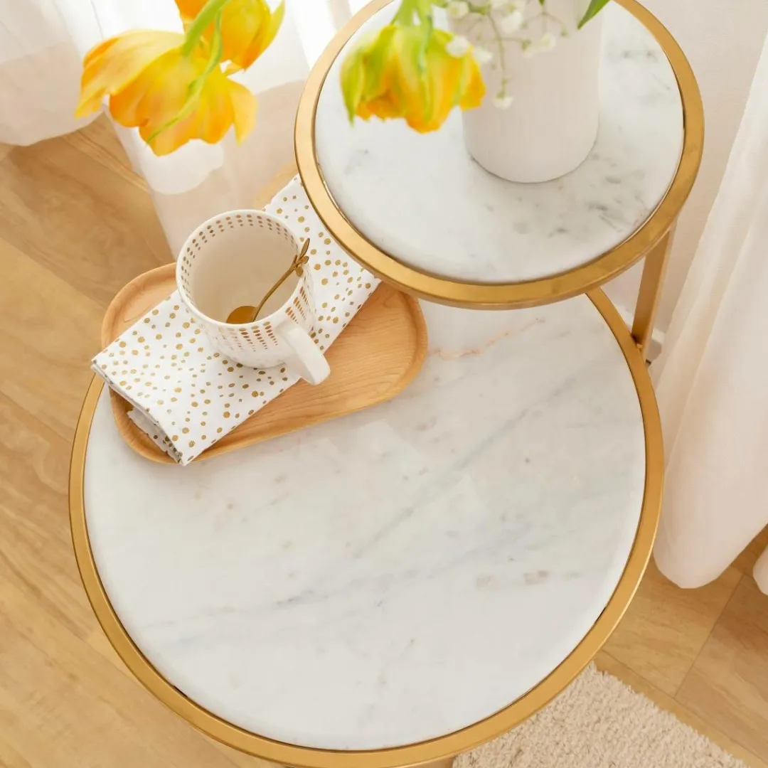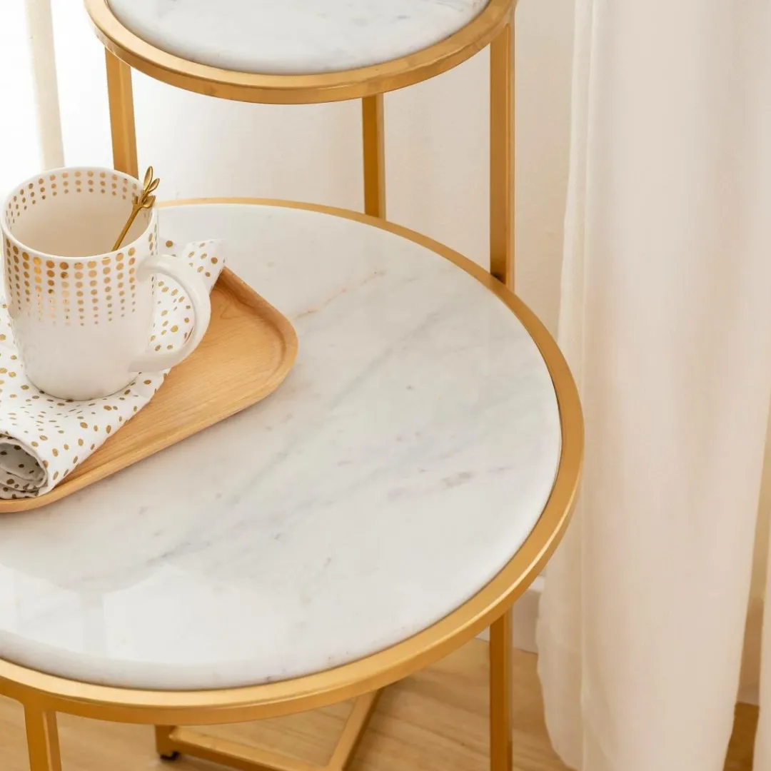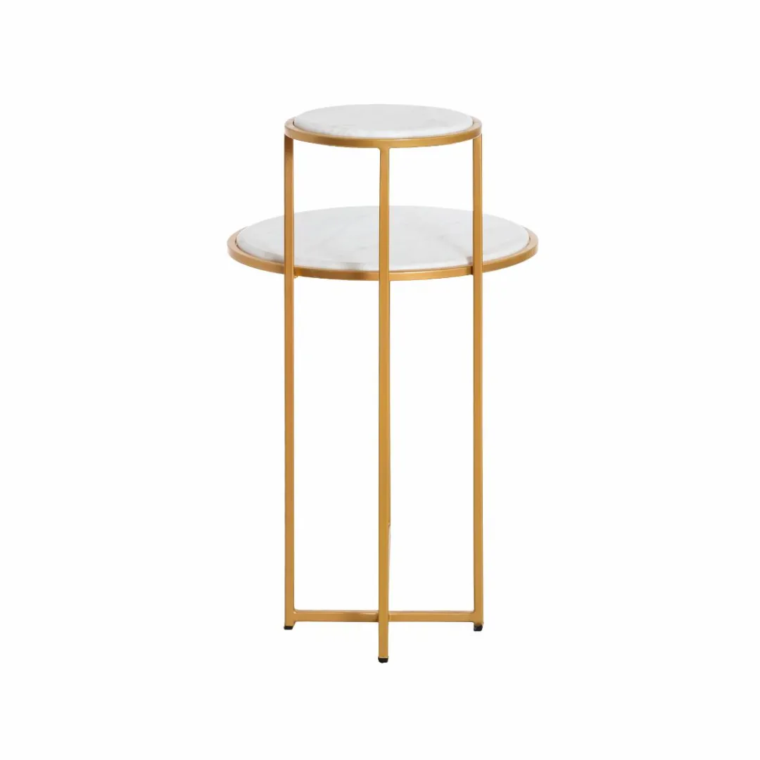 Vous êtes à la recherche d’un meuble intemporel qui ajoutera de la classe à votre salon ? Ne cherchez pas plus loin que le bout de canapé Rosita. Fabriqué avec un luxueux plateau en marbre blanc de 2 cm d’épaisseur et une structure en métal doré élégant, cette table d’appoint adopte un style contemporain tout en étant facile d’entretien.