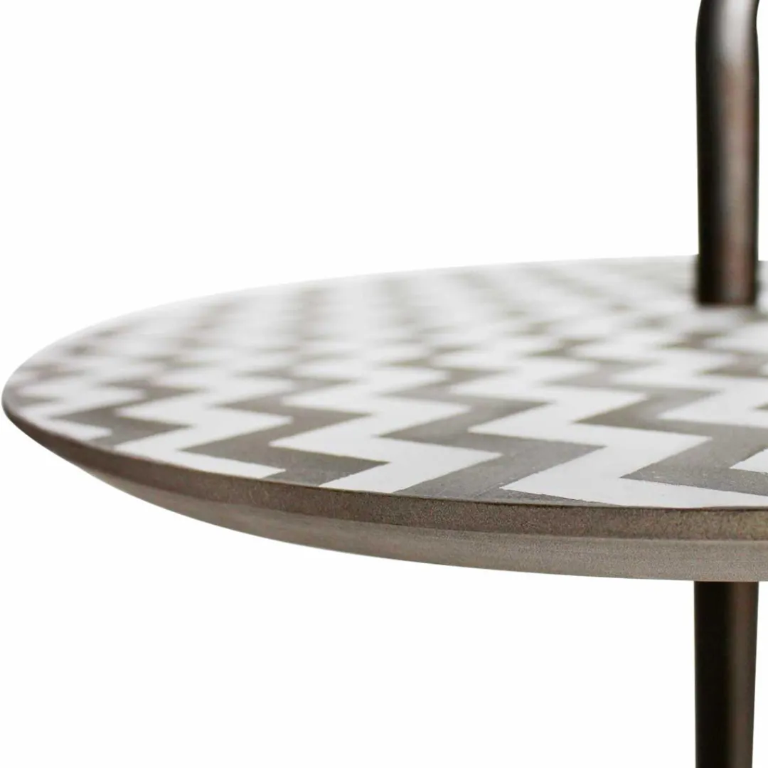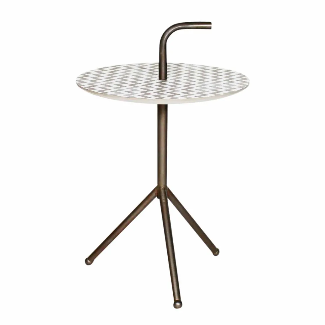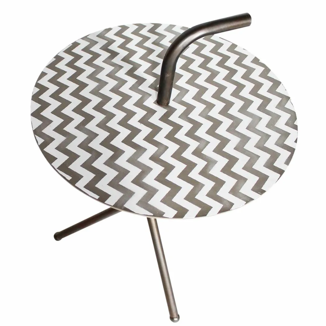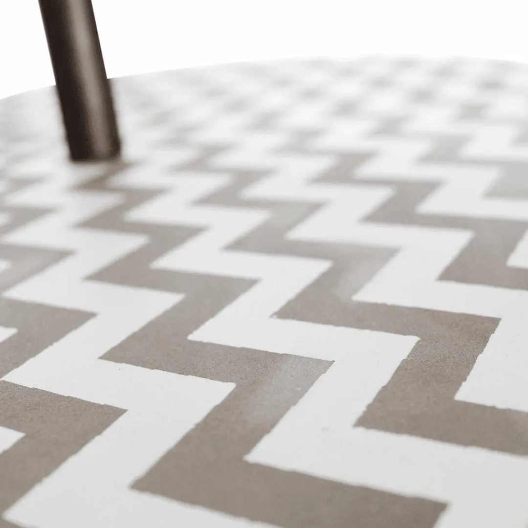 Cette table d’appoint industrielle en MDF se placera idéalement en bout de canapé pour accueilir un verre, une tasse, un livre ou une télécommande. Son design très original et ses couleurs blanc et gris en feront aussi bien une table d’appoint à sortir au moment de l’apéritif, qu’une petite console industrielle à disposer dans un couloir ou une entrée. On aime son esprit rétro son plateau gris avec imprimés géométriques blancs. Le pied de la table est en métal gris plein, pour une bonne stabilité et une grande robustesse.