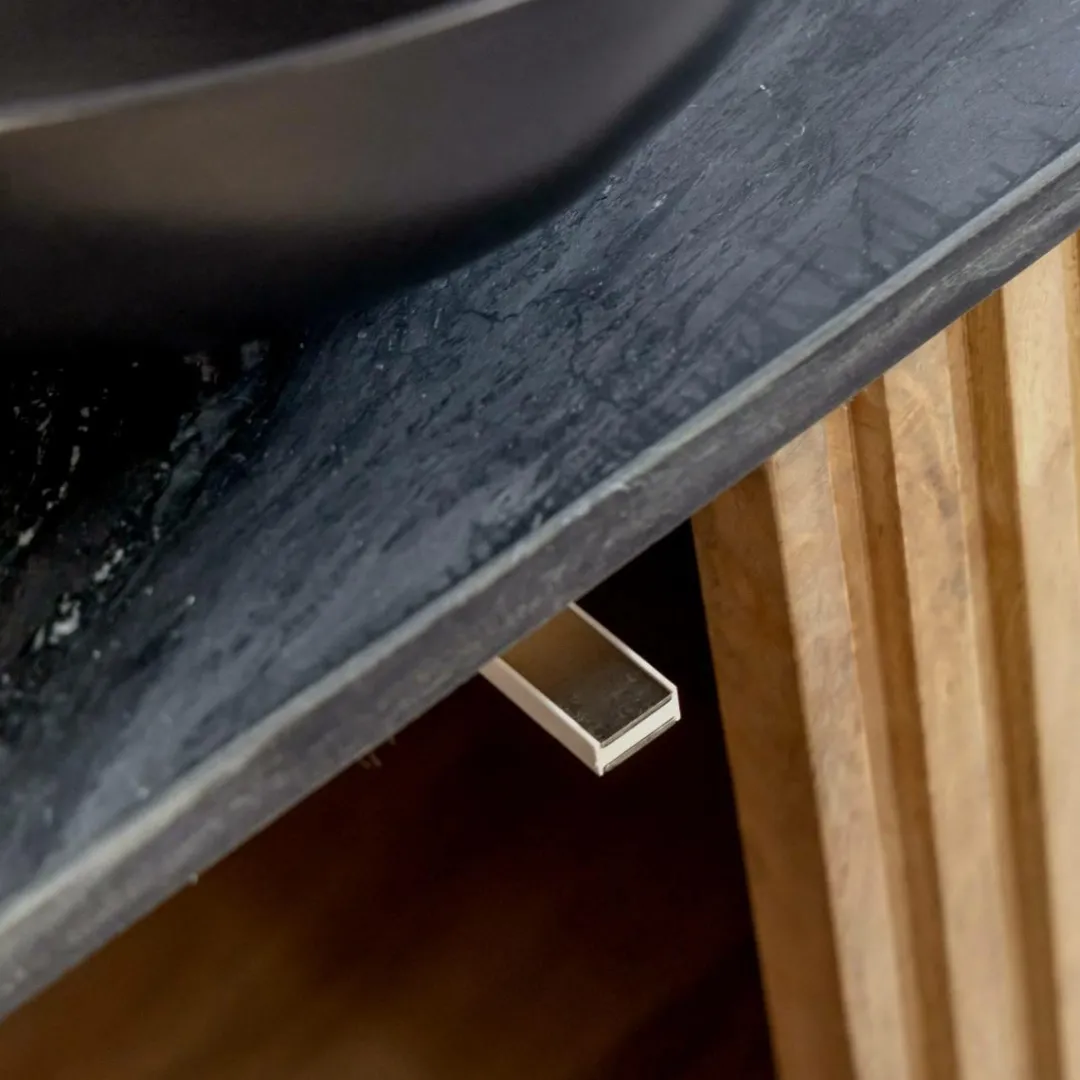 Offrez à votre intérieur une pièce forte avec ce buffet en bois de manguier et marbre noir, issu de la collection Betty. Son design joue sur les contrastes : la noblesse du marbre, avec son aspect minéral et raffiné, s’accorde parfaitement au bois de manguier massif, chaleureux et lumineux. Les lignes rainurées des portes centrales apportent une touche graphique subtile qui modernise l’ensemble.