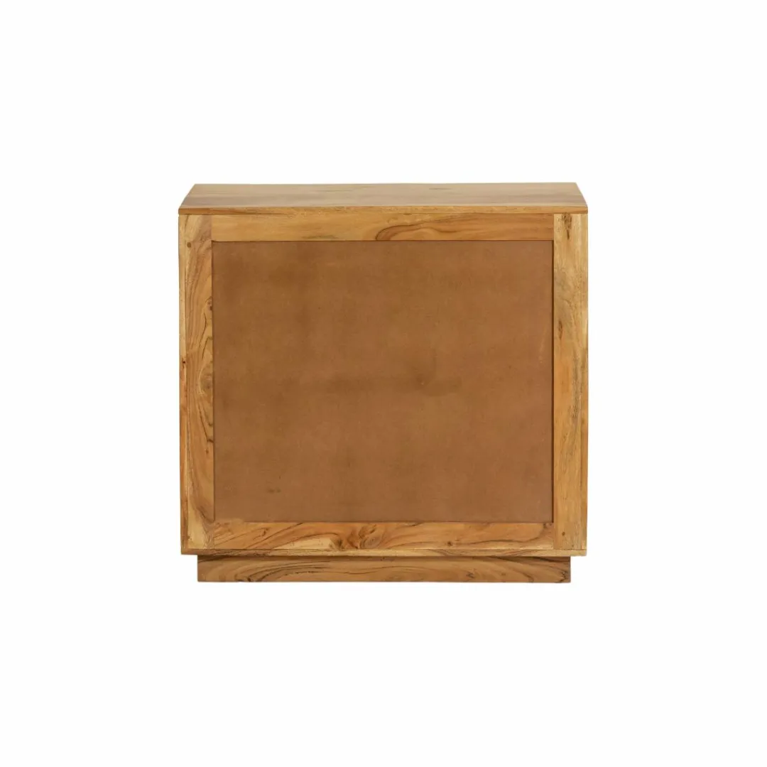 Conçu dans un bois naturellement contrasté, l’acacia offre ici une palette de nuances chaudes et authentiques, mêlées à des inserts de tons gris, vert-de-gris ou anthracite, pour un look aussi décoratif qu’élégant. Derrière ses deux portes battantes, ce meuble compact cache un espace de rangement pratique, idéal pour organiser vaisselle, linge ou objets du quotidien.