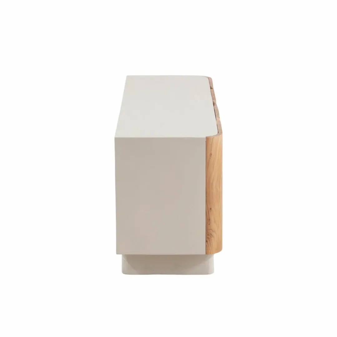 Ce buffet séduit par l’association harmonieuse de deux essences de bois : une structure en manguier blanchi qui apporte luminosité et douceur, et des portes en acacia naturel qui révèlent des nuances chaleureuses et authentiques. Son design épuré et contemporain en fait une pièce de caractère, capable de sublimer aussi bien un intérieur moderne qu’un décor plus naturel.