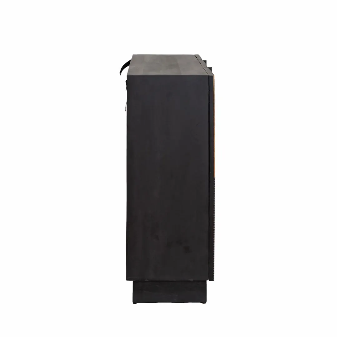 Voici l’ajout parfait à votre maison ! Ce meuble d’apparat a été fabriqué en bois de manguier et présente un design moderne avec un pied en métal noir. Chaque porte s’ouvre pour révéler un vaste espace de rangement pour tous les objets que vous souhaitez garder bien organisés. Mesurant 40 cm de profondeur, 160 cm de largeur et 108 cm de hauteur, ce buffet est idéal pour les petites et les grandes pièces.