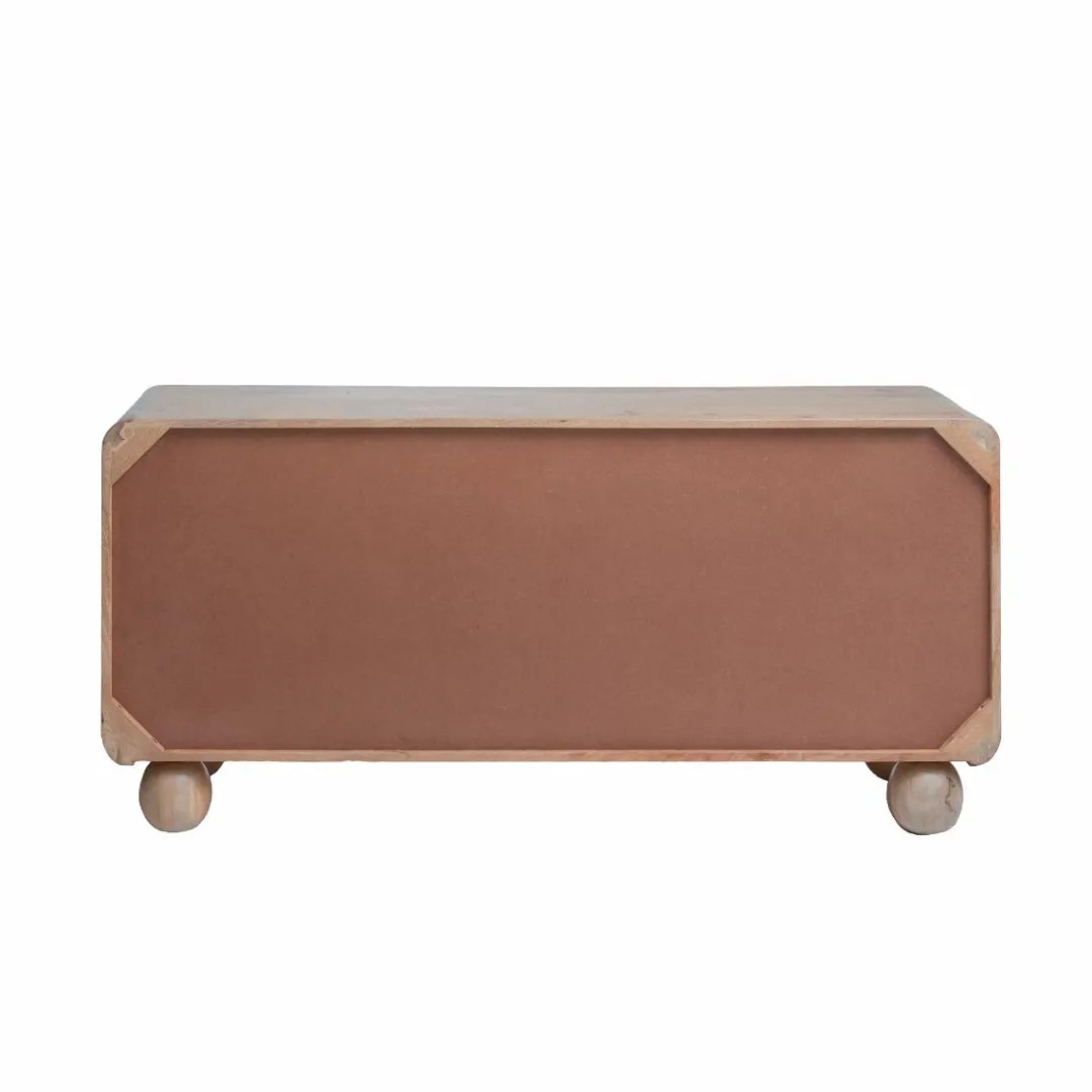 Ce meuble en bois de manguier amènera à votre décoration une touche de modernité et de convivialité. Son design atypique souligné par ses quatre pieds ronds, lui permet de lui donner une authenticité et une forme unique.