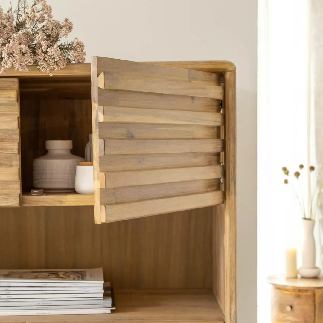 Sa superbe finition en bois d’acacia dégage chaleur et élégance, tandis que ses lignes épurées et sa silhouette minimaliste créent un impact visuel saisissant.