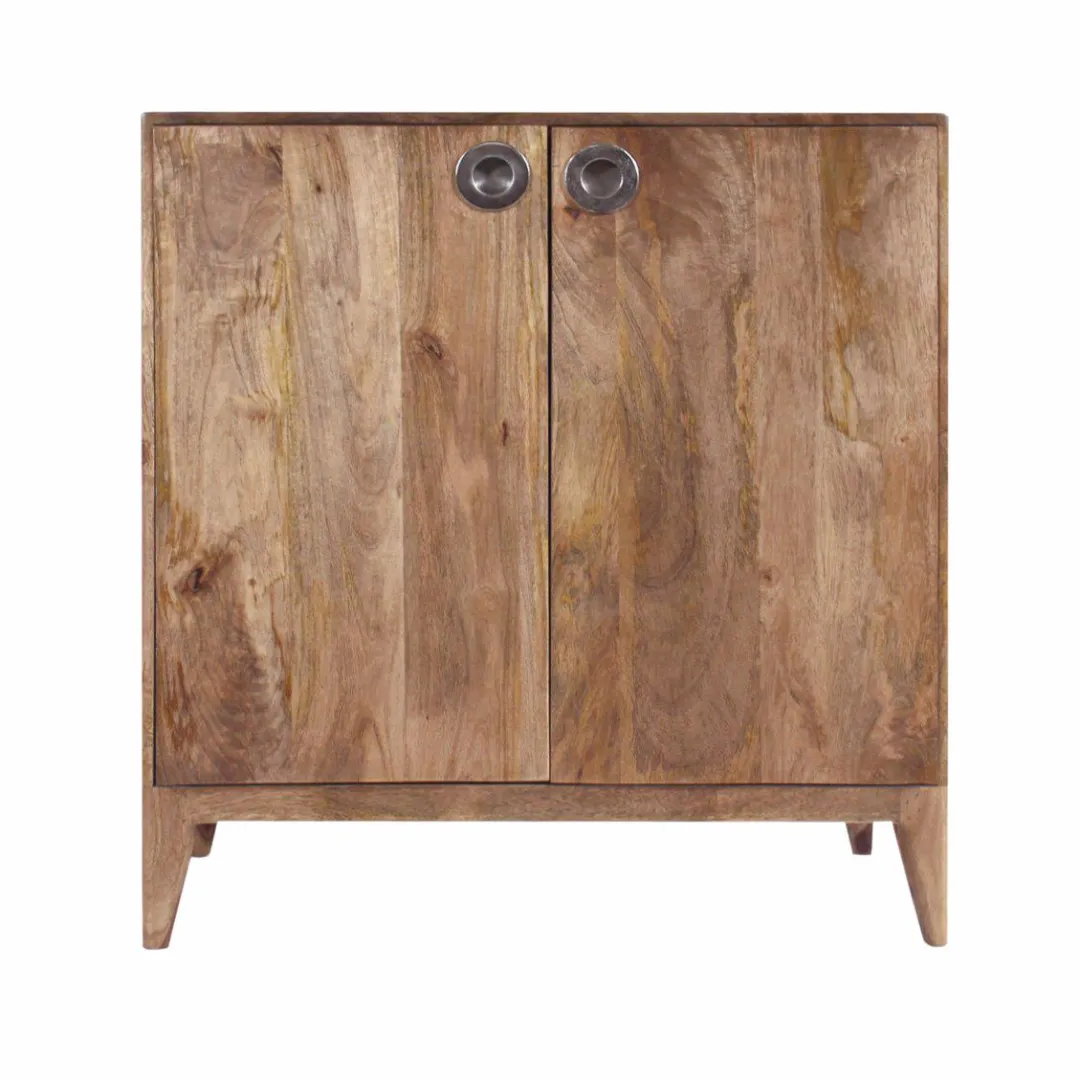 Ce buffet bois massif se démarque grâce à ses dimensions atypiques, plus petit qu’un buffet traditionnel, il saura satisfaire les petits espaces en proposant un meuble tendance capable de stocker. Ses dimensions très arrangeantes ainsi que ses traits fins sont des caractéristiques qui personnalisent ce buffet. Côté rangement, derrière ses 2 portes battantes se loge une étagère fixe qui vous permettra d’organiser votre rangement.