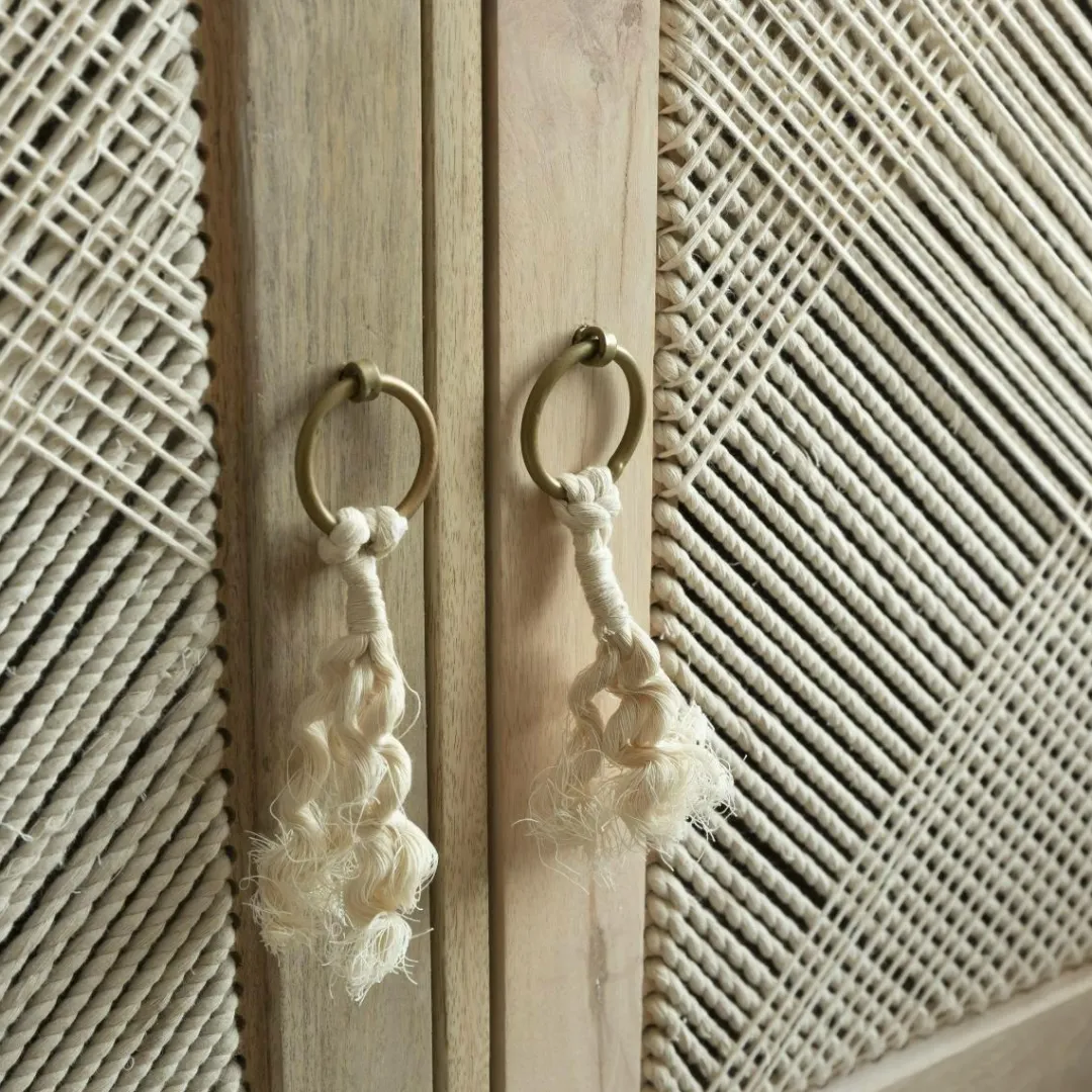 Grâce à sa matière en bois de manguier, ce buffet apportera à votre salon un côté chaleureux et moderne. En plus d’apporter une touche de modernité à votre salon, cette pièce vous propose des caractéristiques pratiques. Avec sa hauteur de 83 cm et sa largeur de 90cm, il saura trouvé sa place dans n’importe quelle pièce de votre maison. Ce meuble vous propose un bel espace de stockage, avec deux étagères amovibles derrière ses deux portes aimantées, originales en corde.