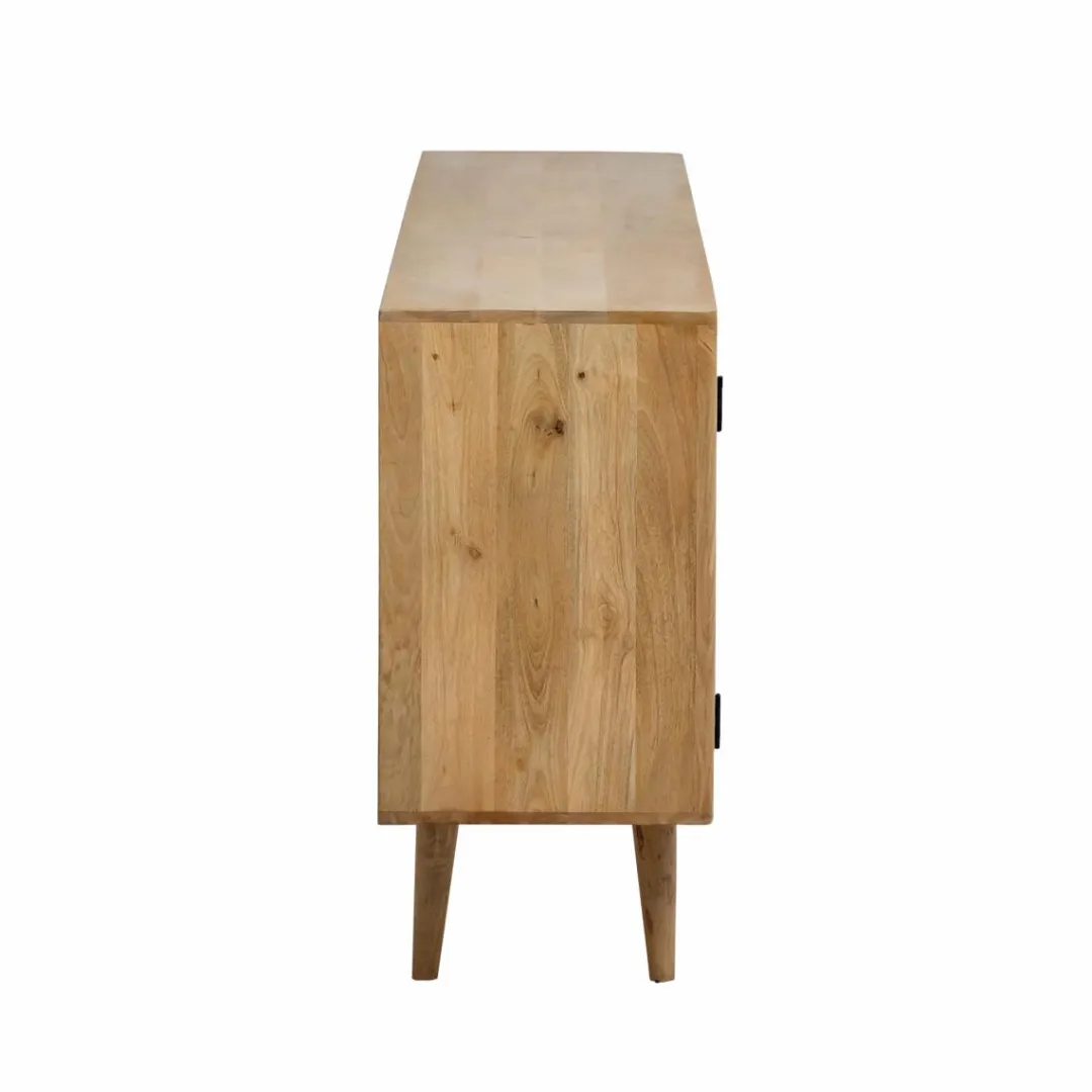 Le buffet long en bois de manguier Rowene est une pièce maîtresse qui ajoutera une touche contemporaine à votre intérieur. Fabriqué à partir de bois de manguier de haute qualité, ce meuble allie l’élégance authentique et la robustesse pour une expérience visuelle et tactile exceptionnelle. Chaque détail est soigné, des veines distinctes du bois aux finitions impeccables, faisant de chaque buffet une pièce unique.
