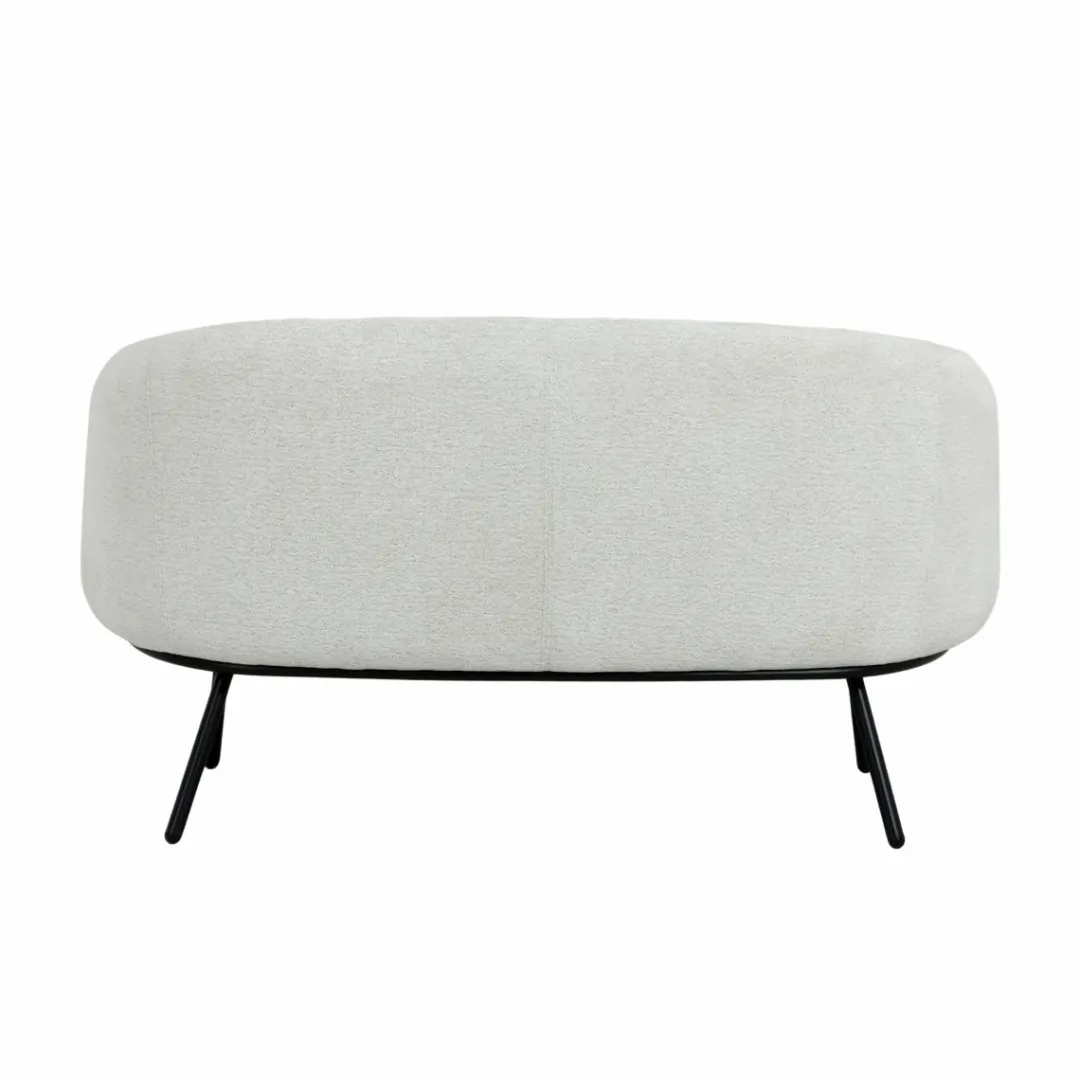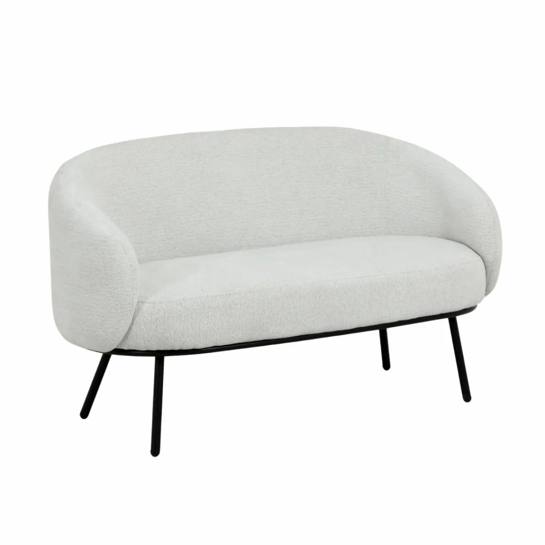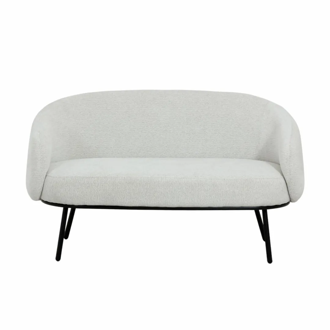 Ce canapé 2 places de la collection Filipa se distingue par son revêtement en tissu bouclette écru, doux et chaleureux, qui apporte une touche cocooning au salon. Son format compact de 135 cm en fait une assise idéale pour deux personnes.