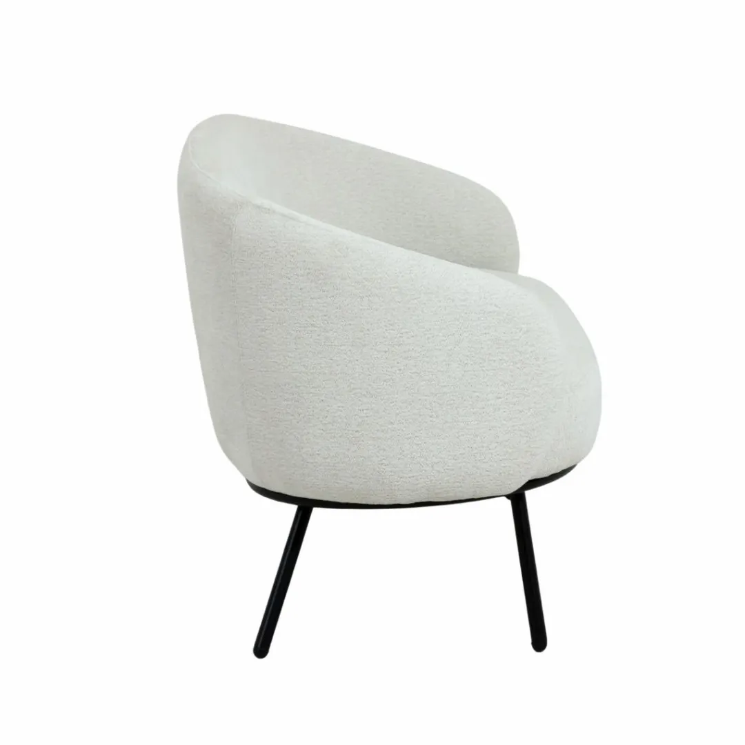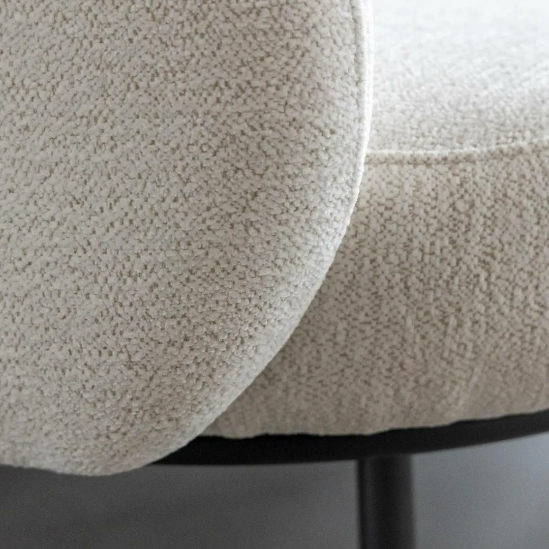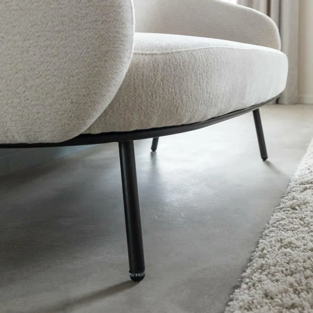 Avec son dossier arrondi et son assise confortable, il invite à la détente tout en ajoutant une note élégante à l’intérieur. Les pieds en métal noir apportent un contraste moderne et garantissent robustesse et stabilité.