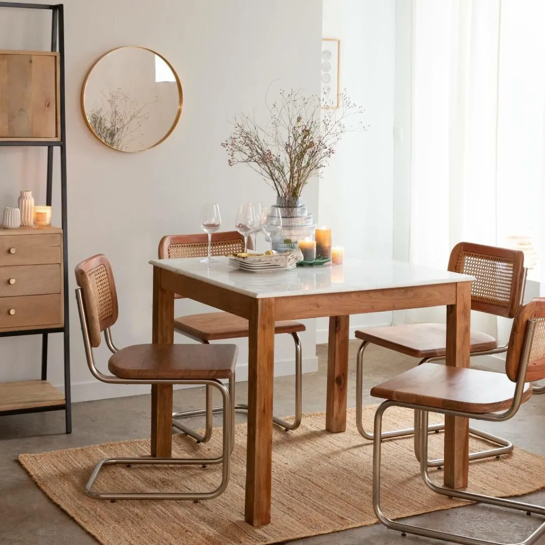 On est sur un trio gagnant. Du bois massif, du cannage et du métal au service de cette chaise catilever. Pile dans la tendance. On retrouve un dosage parfait, un design tendance et une robustesse sans faille.