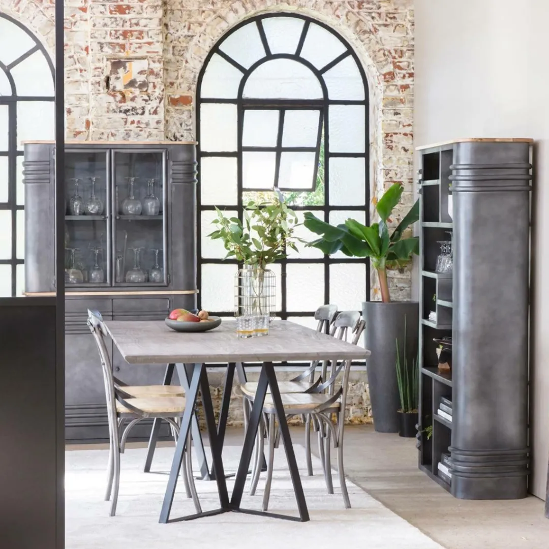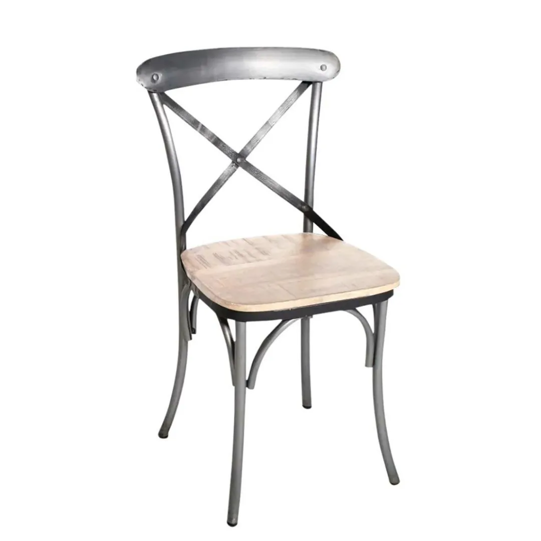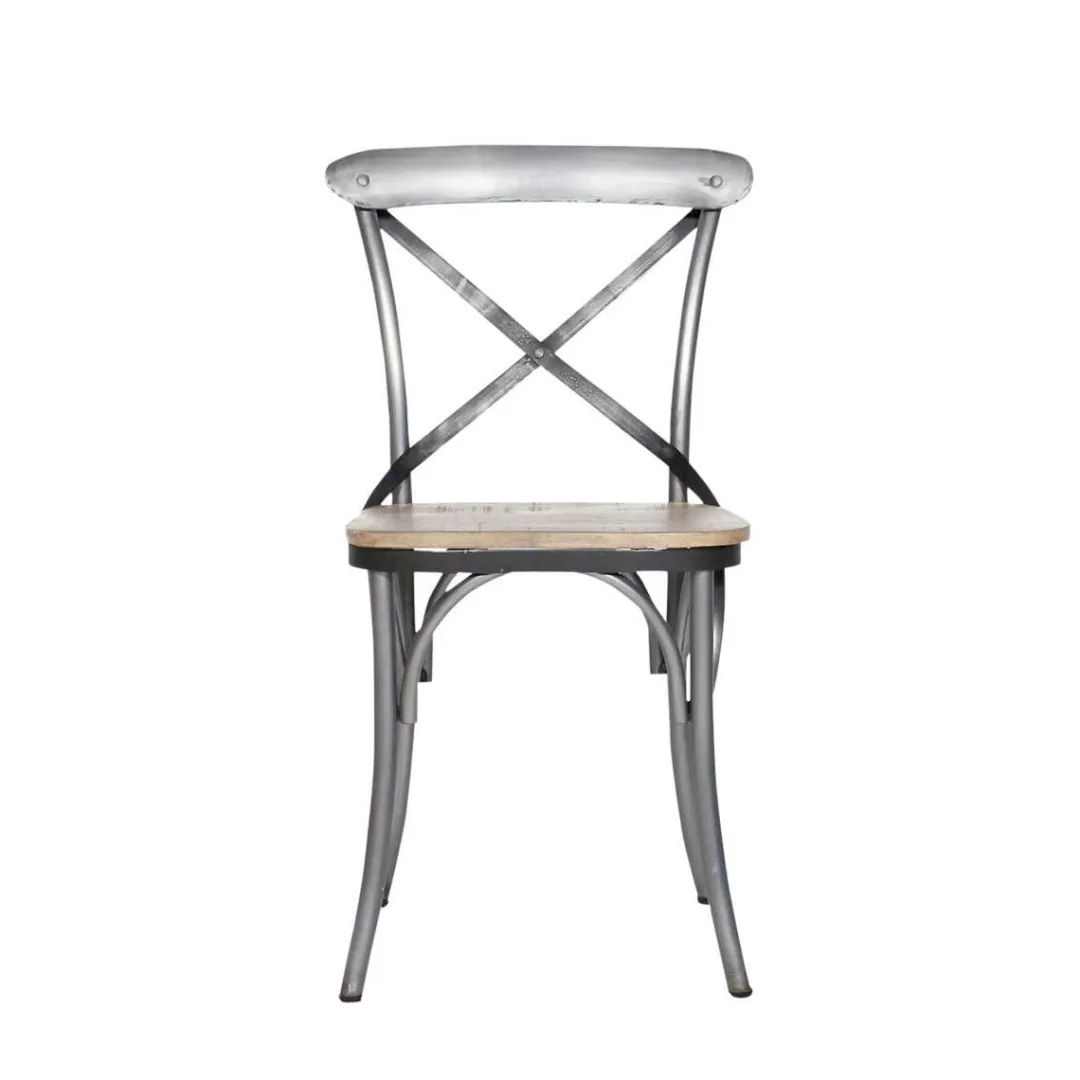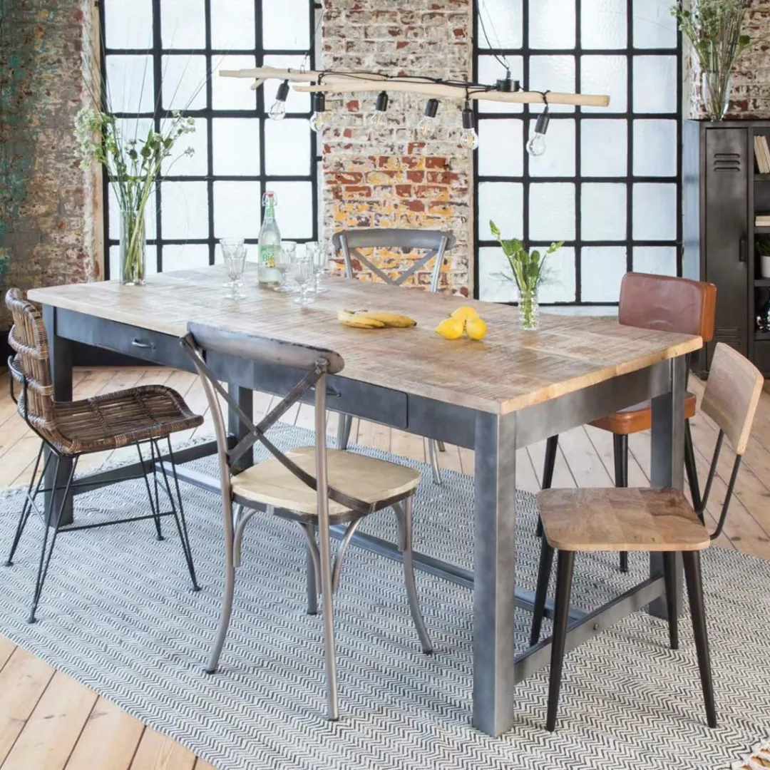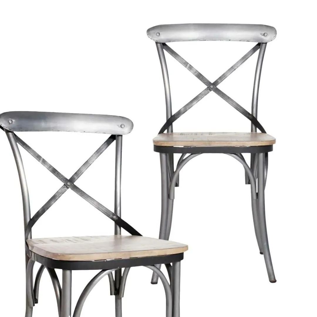 Vous êtes à la recherche d’un lot de 2 chaises originales et dans un style industriel ? Cette chaise en métal gris et en bois vieilli (bois de manguier) va vous inspirer ! Vous allez adorer l’aspect brut de sa structure qui crée l’impression d’un meuble usé par le temps. Son dossier croisillons lui donne un côté rétro / vintage sympathique et peu commun. Vous pourrez placer cette chaise industrielle vendue par 2 autour d’une table ou d’un bureau de préférence dans une matière brute comme le métal ou le bois.