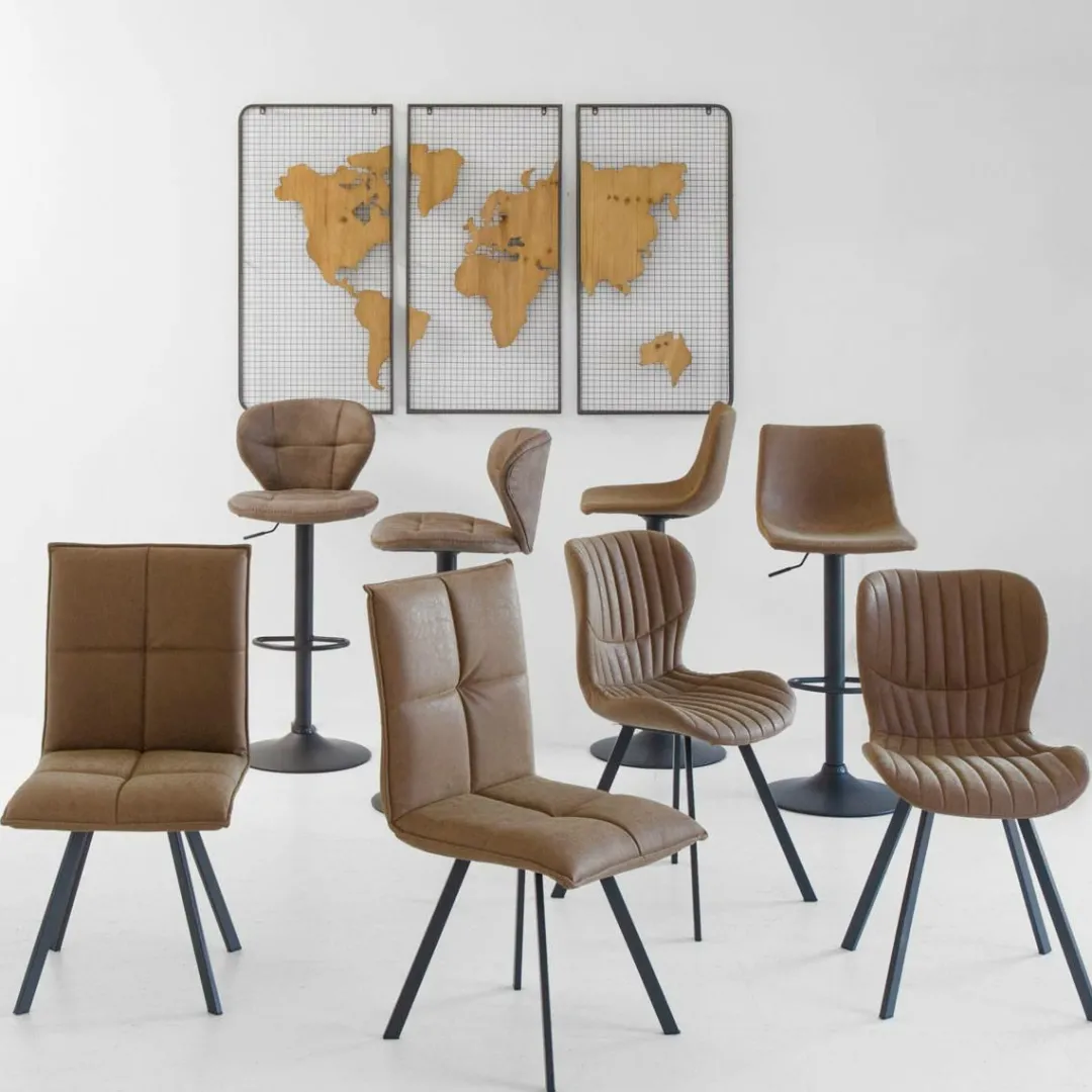 Cette chaise industrielle vendue par 2 et dotée d’une assise rembourrée vous offre un confort optimal, vous ne vous en lasserez pas ! Son coloris marron apportera les tendances actuelles au coeur de votre intérieur dans la pièce que vous désirez. Cette chaise contemporaine possède également en piètement compas en métal noir qui apportera une touche industrielle dans vos décorations. On aime particulièrement son design quadrillé qui apporte cette singularité à la chaise.