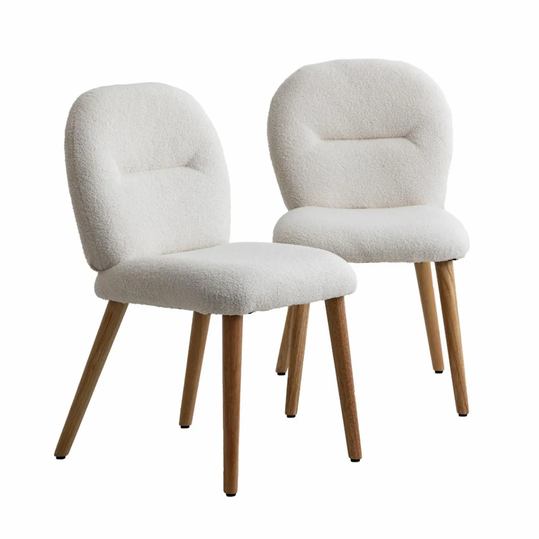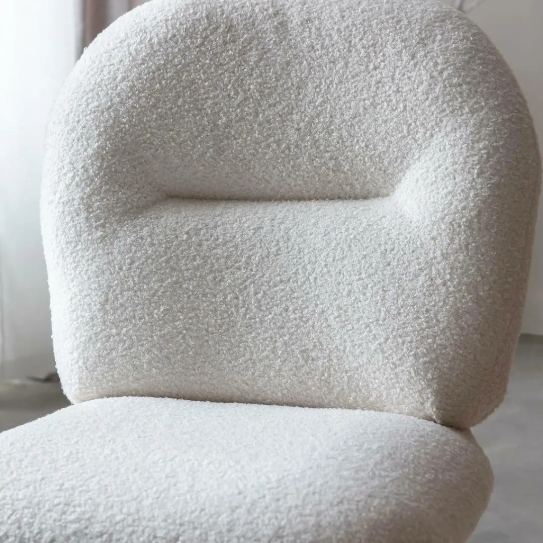 Apportez une touche de douceur et de modernité à votre intérieur avec la chaise Ayse. Son tissu bouclette blanc, à la fois élégant et tendance, offre un confort optimal, tandis que ses pieds en bois d’hévéa assurent solidité et raffinement.