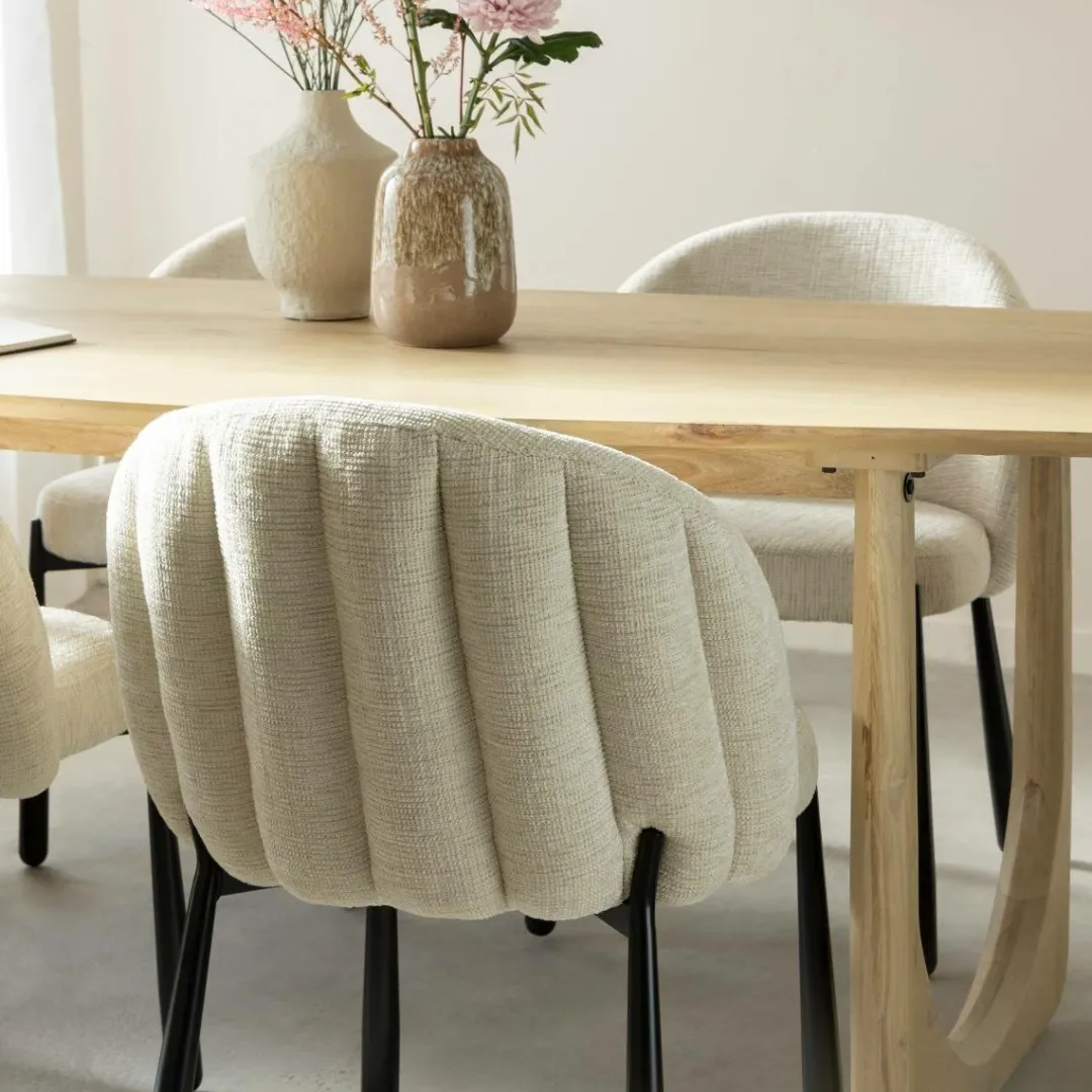 Cette chaise Ondine associe confort et élégance dans un design épuré. Revêtue d’un tissu épure doux et lumineux, elle s’intègre facilement dans une salle à manger ou un espace bureau.