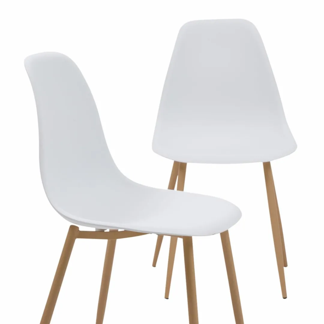 Conçues à partir de matériaux très actuels, elles disposent d’une assise très confortable en plastique et d’un piétement en métal imitation chêne. L’association entre le blanc et le bois est très équilibré et fonctionne très bien, il met en valeur une conception épurée et raffinée.