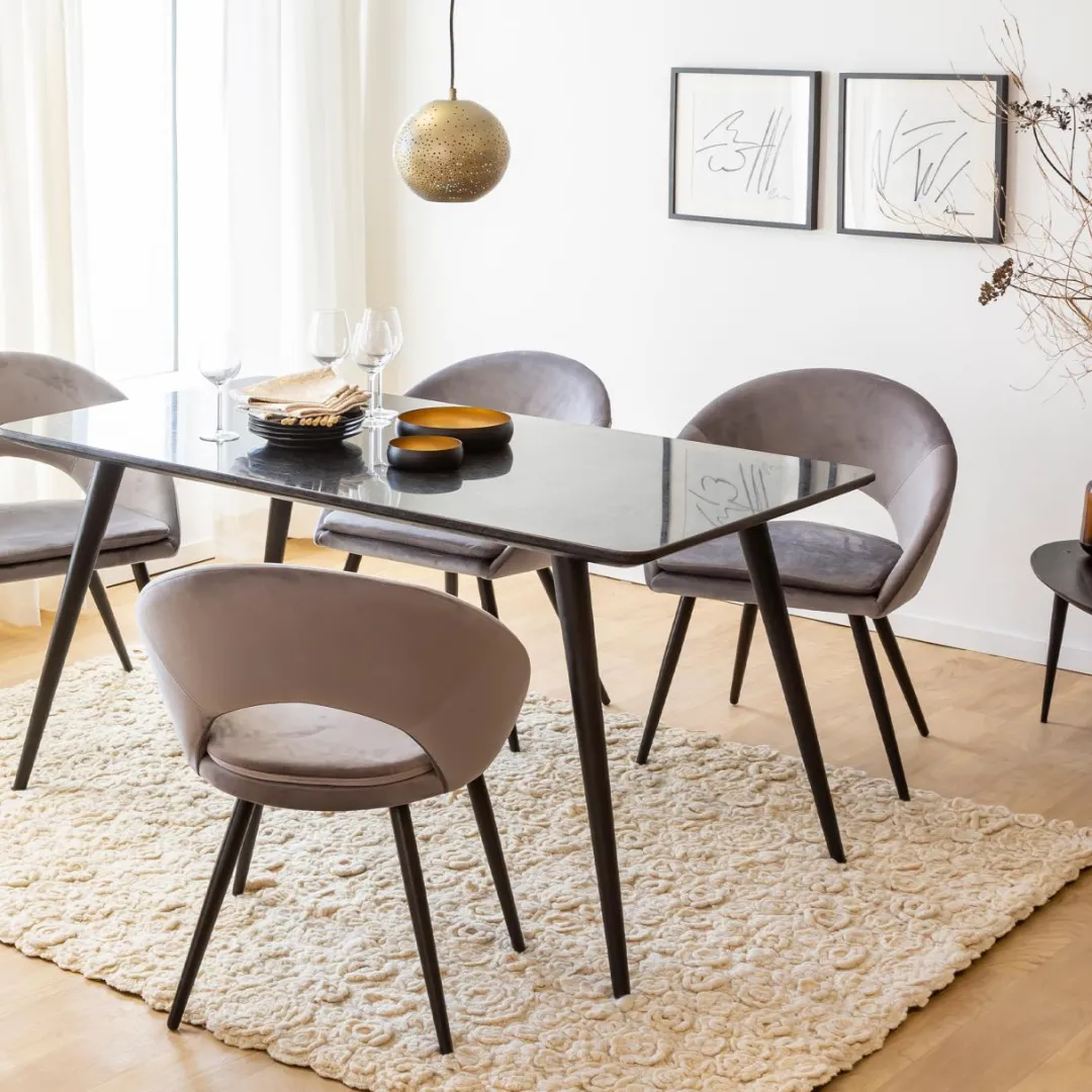 Une chaise se doit de répondre à plusieurs critères. Elle a pour but d’être confortable, pratique, robuste et esthétique. Vendue par lot de 2, cette chaise scandinave contient tous ces critères ! Le coloris de son tissu en velours gris vous permettra de l’intégrer de multiples types de décoration. C’est une couleur passe partout qui va aussi amener une touche élégante dans votre pièce. N’hésitez pas à choisir des petits accessoires de déco colorés pour dynamiser votre ambiance. Nous imaginons très bien, par exemple, une couleur comme le jaune qui se marie très bien avec les teintes grises.