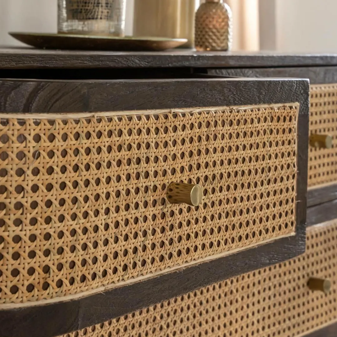 Le meuble Soren combine parfaitement le charme du bois de manguier et l’élégance du cannage pour un style bohème raffiné.