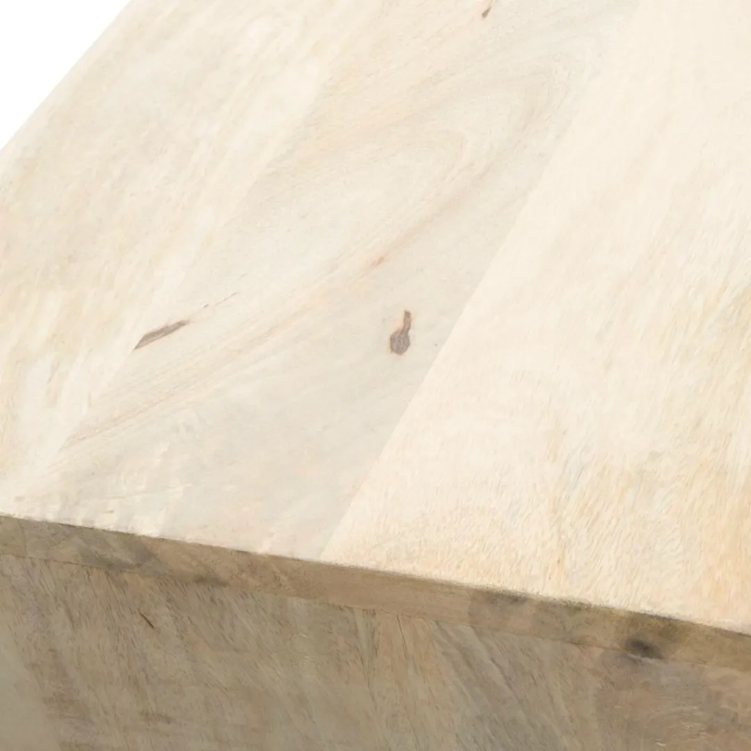 Cette commode en bois massif a été réalisée à partir de matériaux de qualité, à savoir du bois de manguier blanchi. Son bois dispose de nuances claires et lumineuses qui s’associent parfaitement avec les différents motifs que l’on retrouve sur le meuble. Cet effet bohème est très en vogue et apportera une touche de fraicheur dans votre intérieur. Coup de coeur également pour les poignées de tiroirs déparaillées qui apportent une touche d’originalité ! On aime aussi son piétement doré qui apporte de la modernité à l’ensemble du meuble.