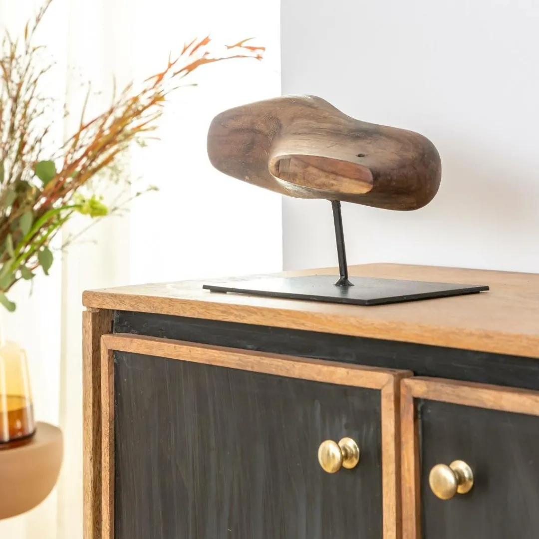 Laissez la beauté de l’art transformer votre intérieur ! Cette magnifique sculpture en bois et en métal, créée avec des matériaux de qualité et un véritable souci du détail, est la pièce d’appoint parfaite pour faire ressortir un sentiment d’élégance créative dans n’importe quel espace de vie.