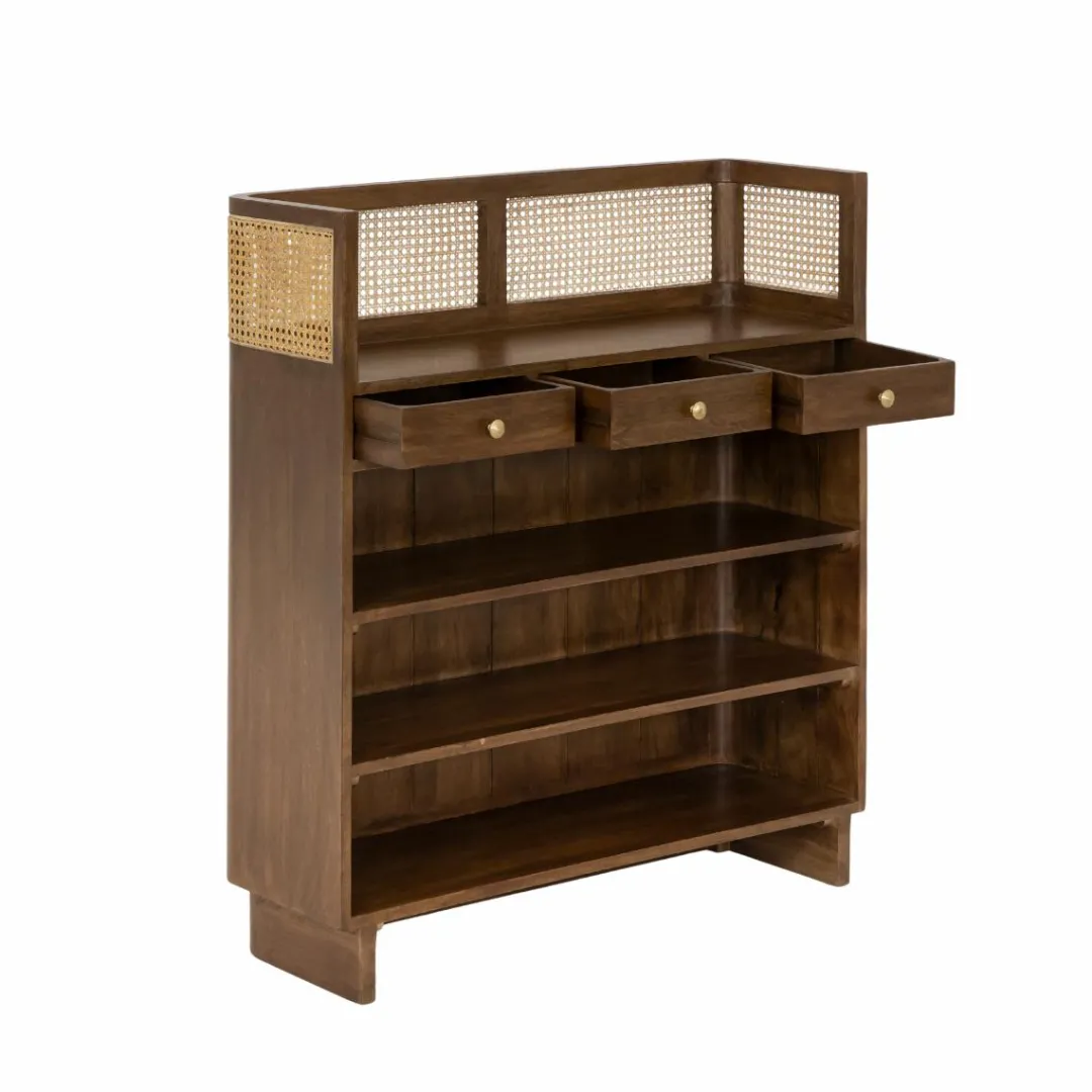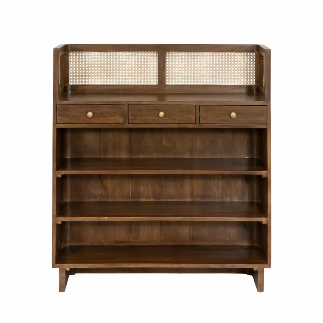 Ce meuble bar en bois de manguier massif séduit par son design chaleureux et son élégance rétro. Habillé d’un cannage sur la partie haute, il apporte une touche artisanale et légère qui contraste joliment avec la teinte profonde et chaleureuse du manguier.