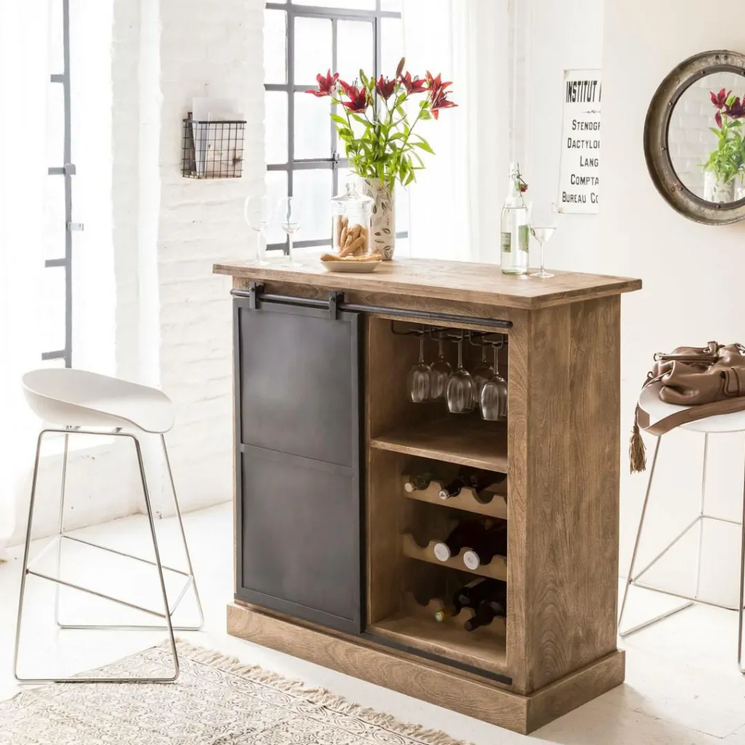 Décorer et stocker, c’est possible avec ce bar industriel. Cette pépite rassemble le bois & le métal et propose un design moderne grâce aux portes verres et portes bouteilles !