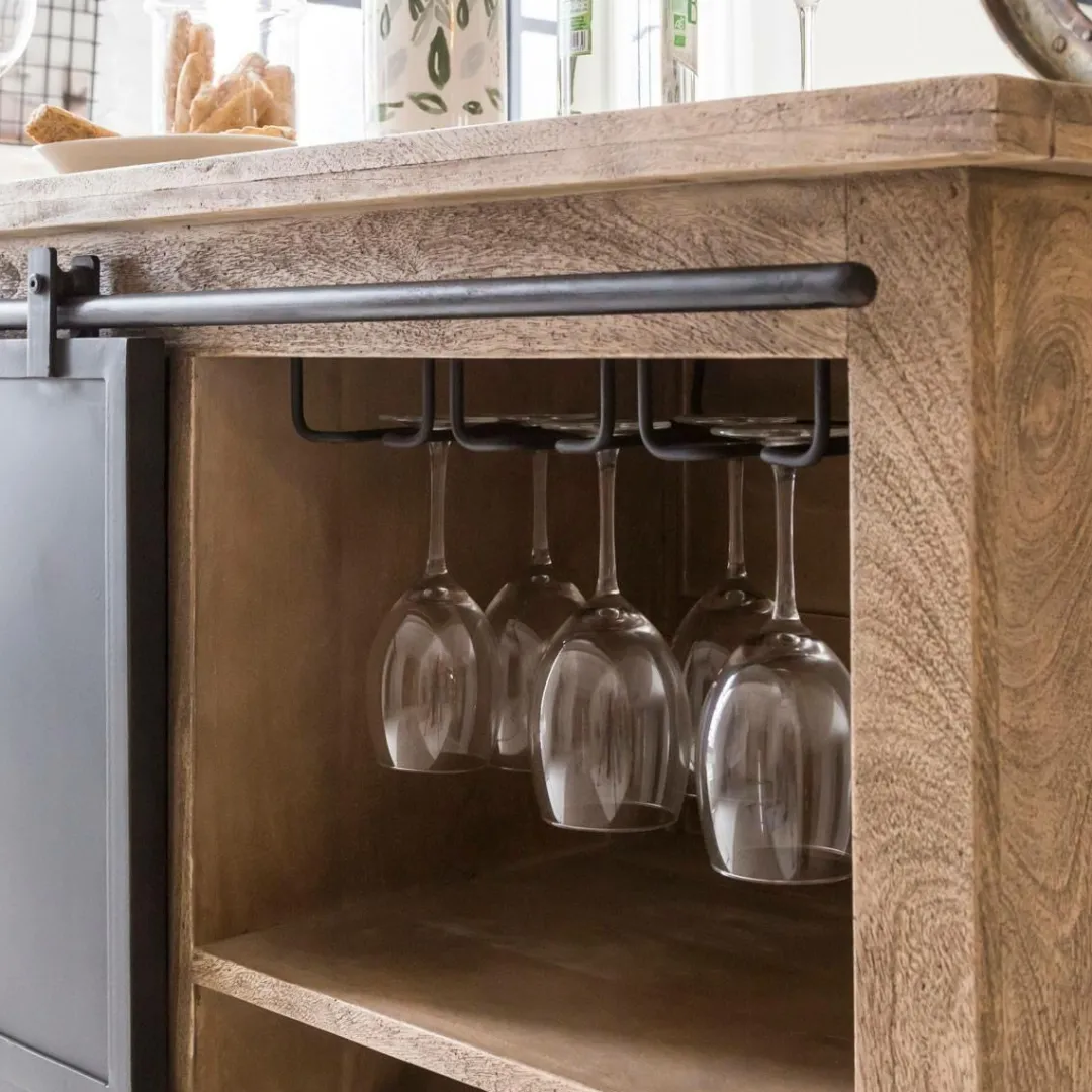Les dimensions optimales de ce bar vous permettront d’en faire rapidement une pièce maitresse. Conçu à partir d’un matériau chaud, à savoir le manguier brossé, on aime les nuances lumineuses et positives. En alliant subtilement le bois et le métal gris foncé, ce meuble se donne les moyens d’intégrer différents types de décoration. Le dos de ce meuble est en MDF.