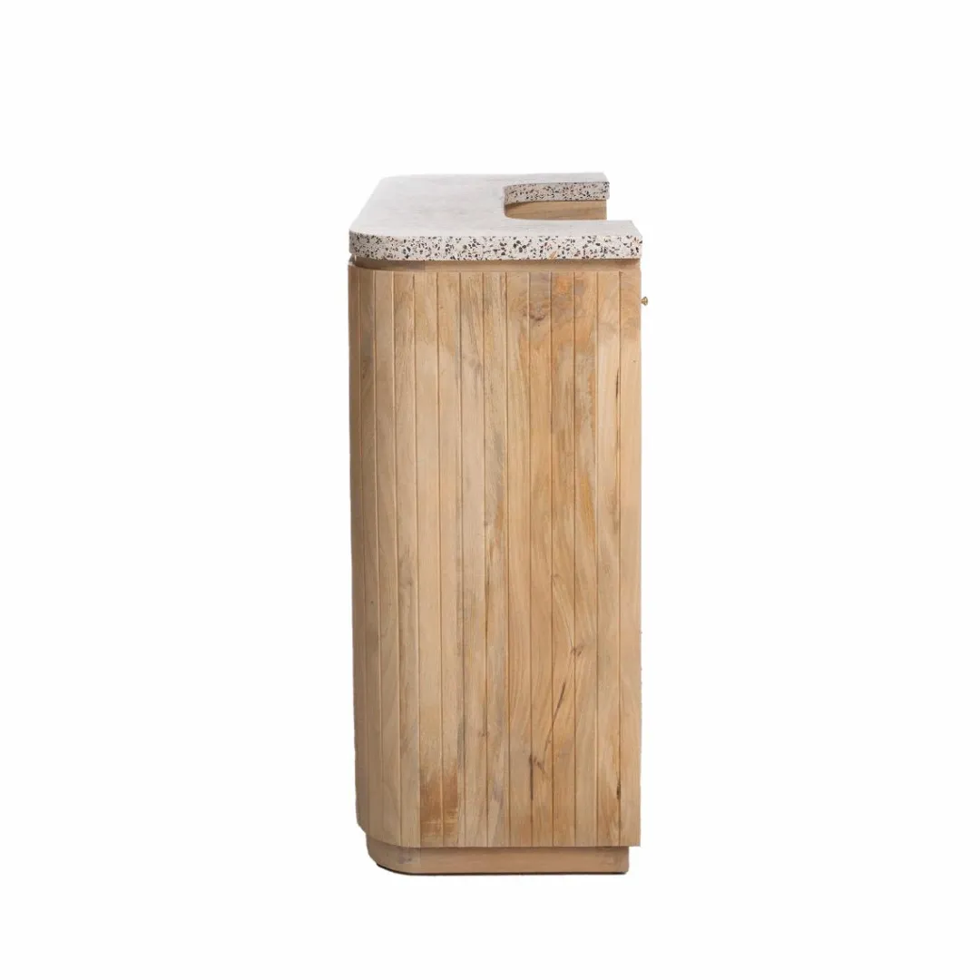 Rencontrez notre tout nouveau bar qui pense déco avant tout. Allier le bois de manguier et le terrazzo est un choix lumineux et pétillant. En quelque sorte, avec lui, prenez un shoot de pep’s au quotidien.