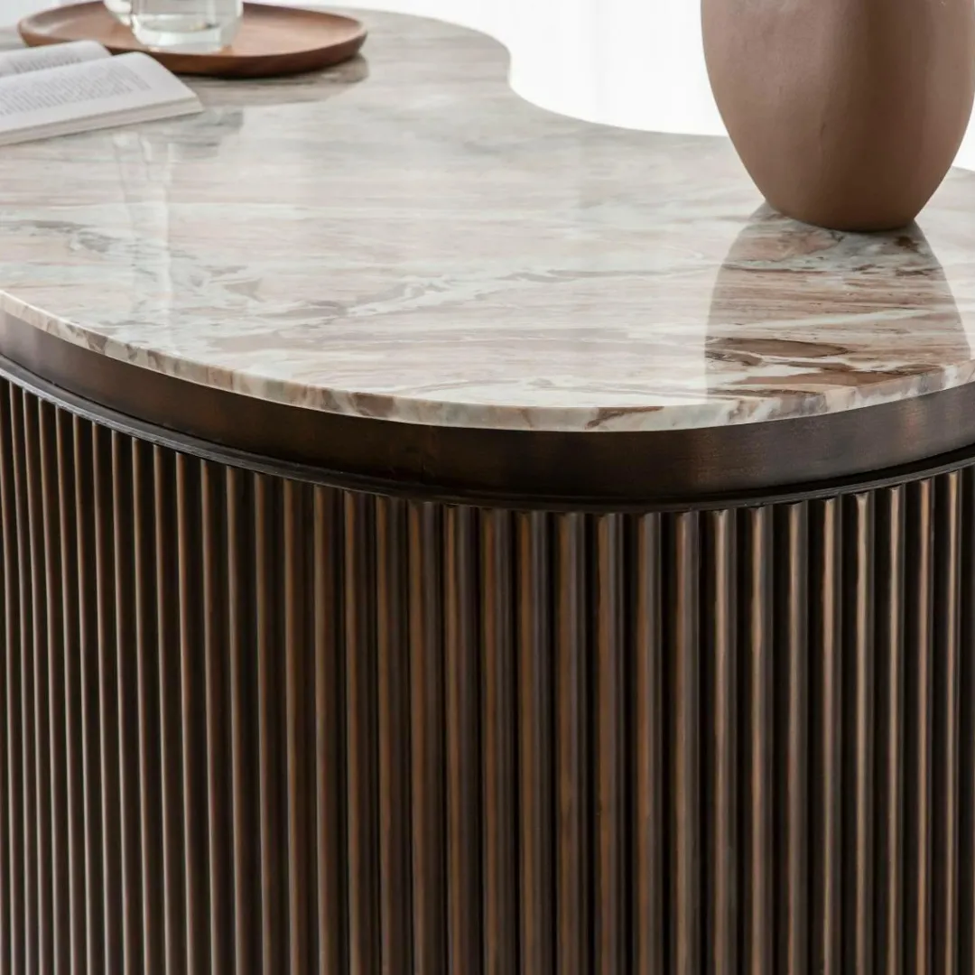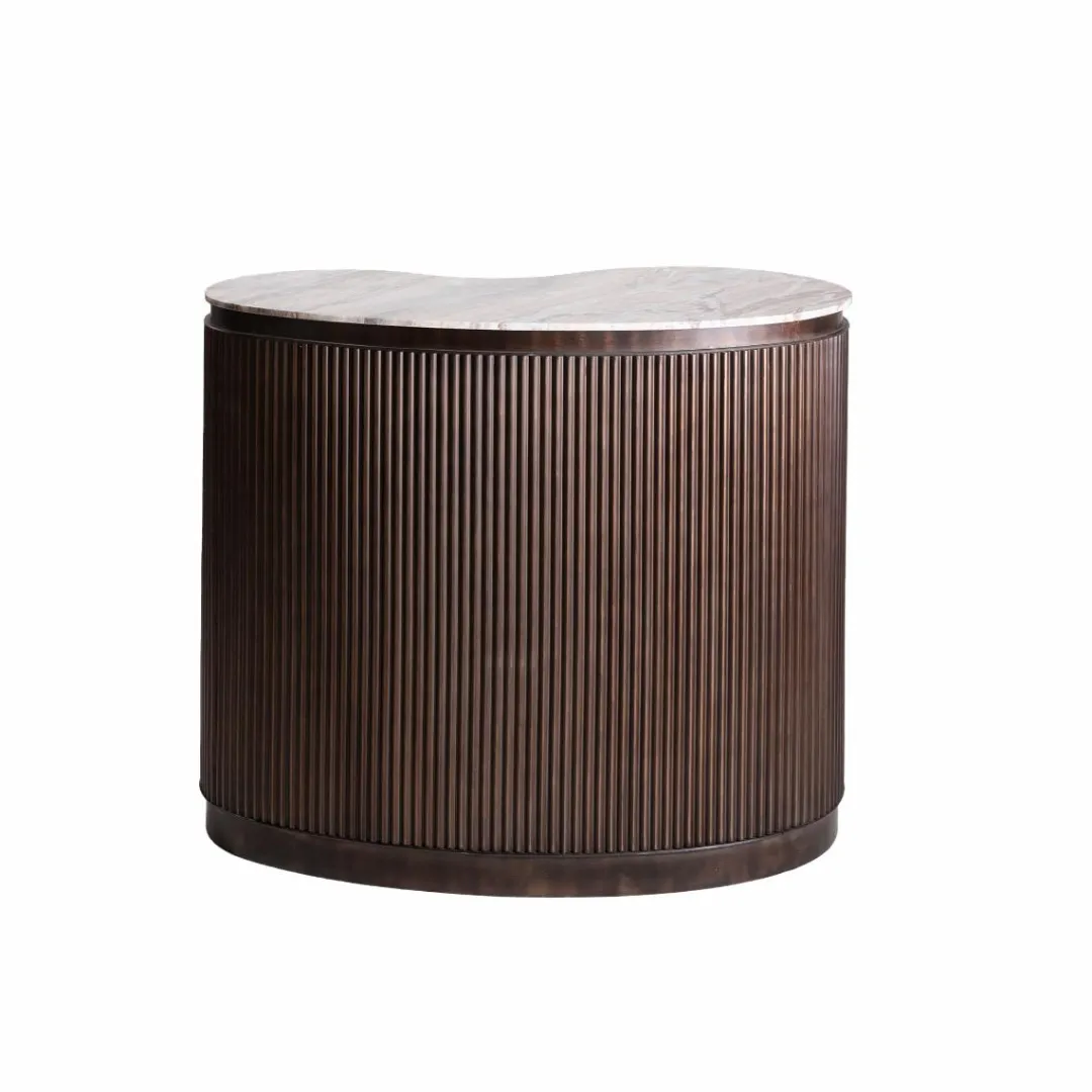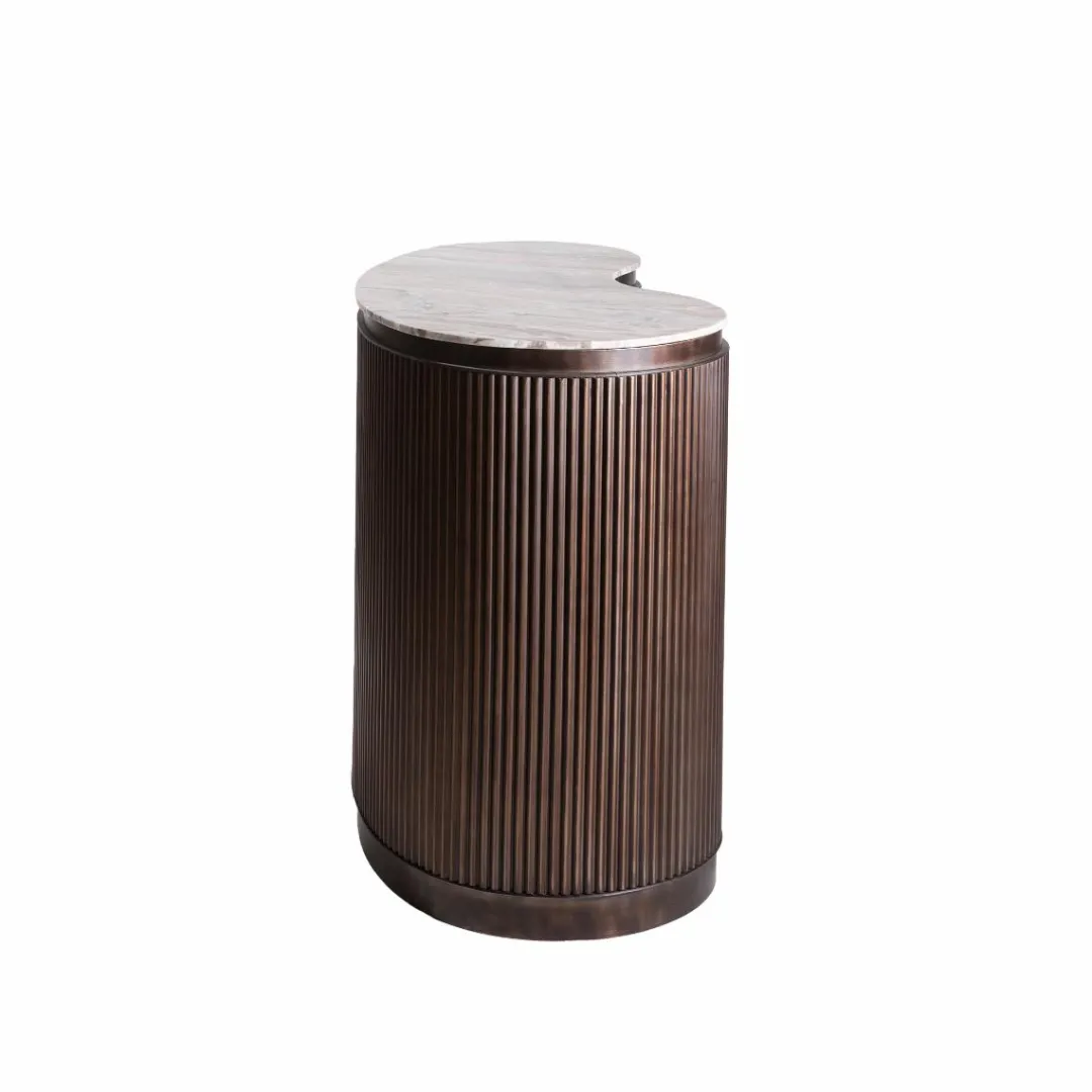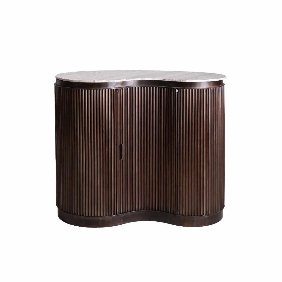Fabriqué à partir d’une belle combinaison de métal brun et de marbre blanc, il offre l’équilibre parfait entre beauté et finesse. D’une hauteur de 100 cm, il offre un grand espace de rangement avec une largeur de 120 cm. Que vous receviez des invités ou que vous vous détendiez seul, ce meuble luxueux apportera une touche de sophistication à votre intérieur.
