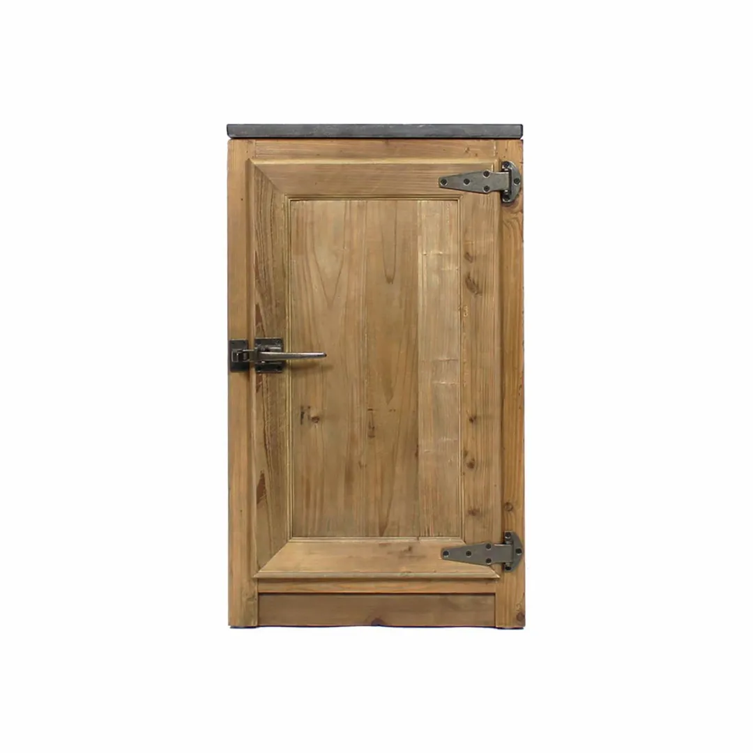 Ce meuble de cuisine est bourré de charme et d’authenticité ! L’alliance entre le bois recyclé, le métal et la pierre bleue naturelle de Chine apporte une touche de modernité à l’ensemble du meuble tout en conservant le cachet d’antan que l’on aime tant. Les nuances claires du vieux pin lui permettront de s’intégrer aisément dans votre intérieur. Faites de votre cuisine un lieu chaleureux où il sera bon de rassembler votre famille !