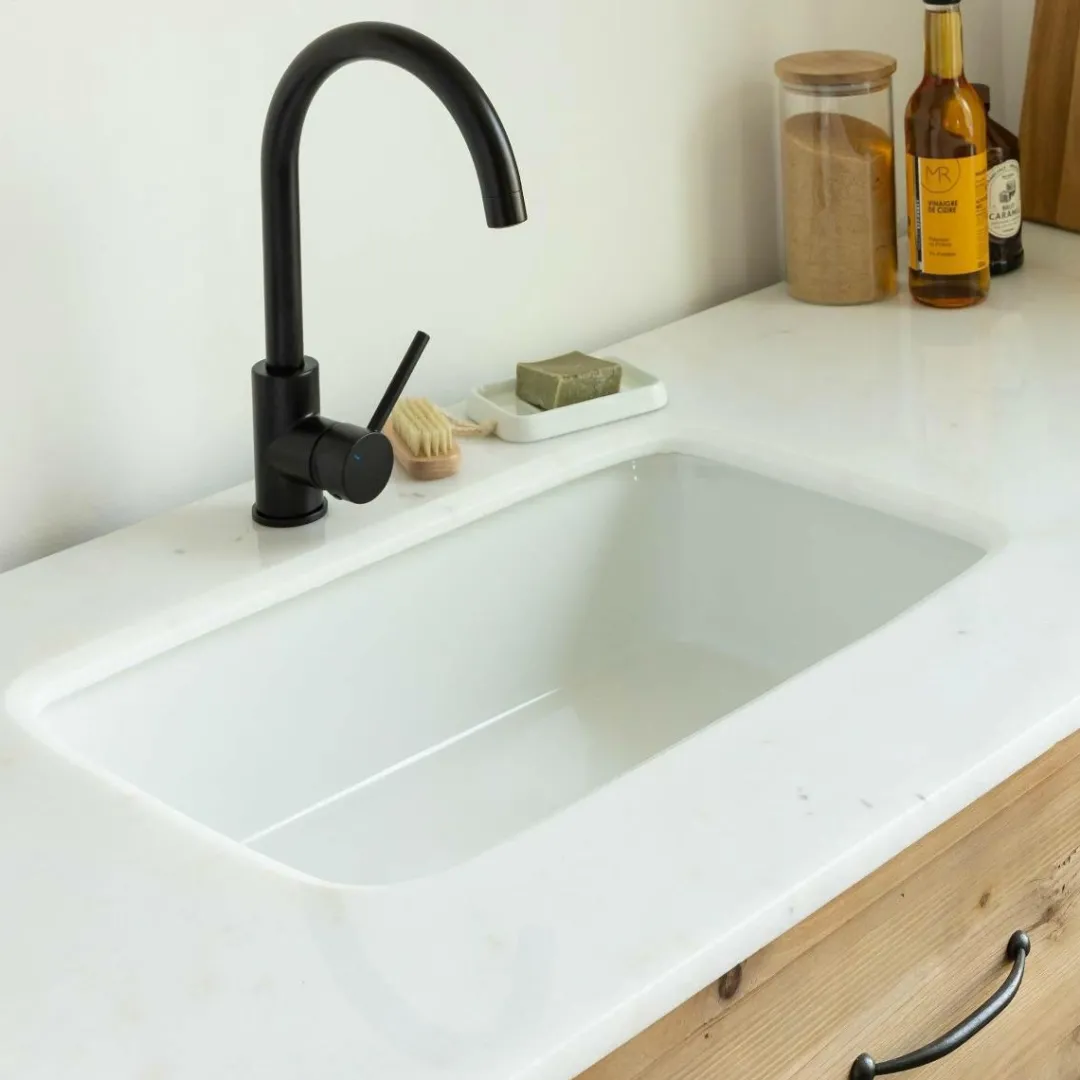 À savoir : le marbre est une matière minérale qui contient une diversité de minéraux, créant ainsi des variations de couleurs uniques pour chaque meuble. La présence des veines, leur forme et leur couleur peuvent donc différer d’une pierre à l’autre.