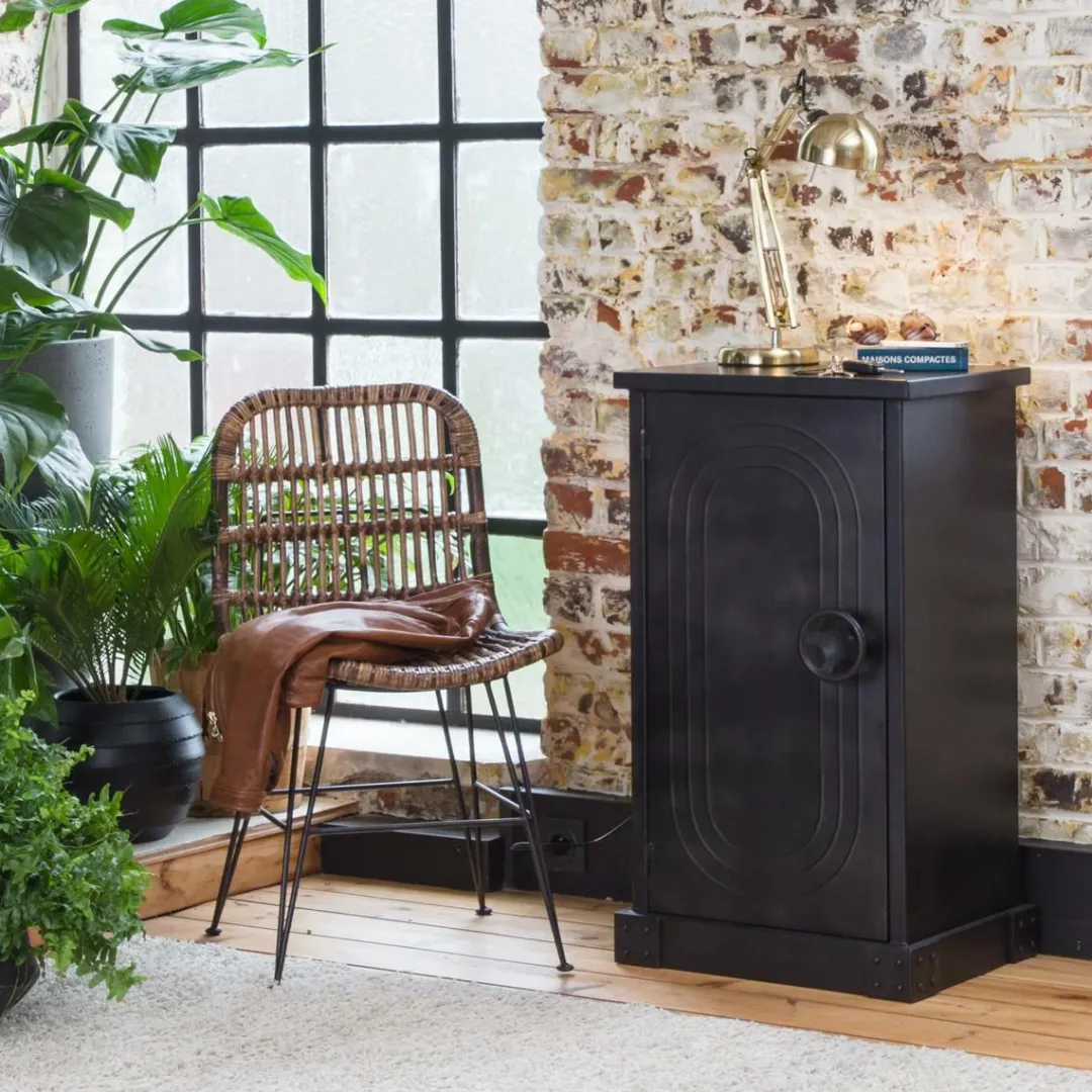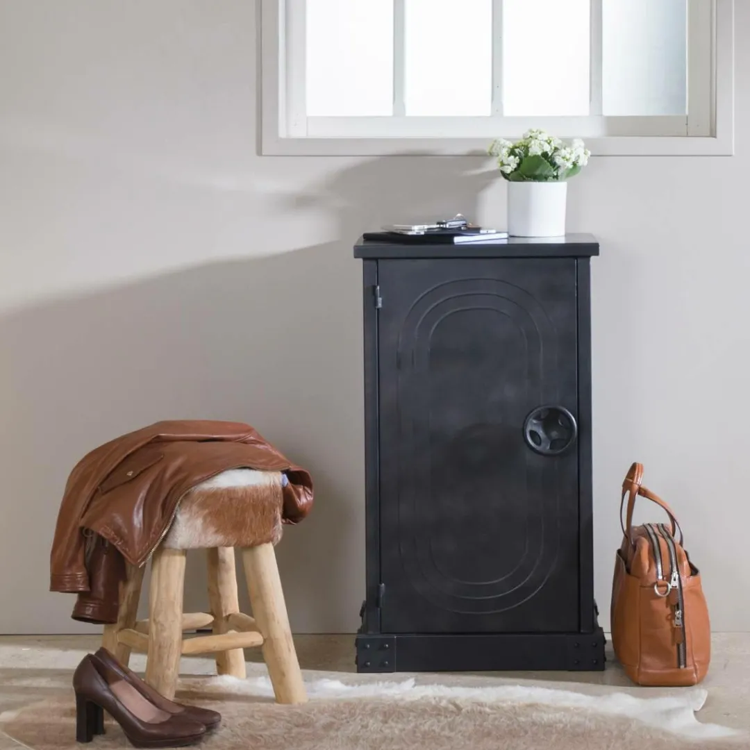 Conçu entièrement en métal noir, ce petit meuble de rangement est aussi décoratif que pratique. Son petit plus, sa design coffre-fort ! Son étagère fixe vous permettra d’organiser votre rangement et optimise l’espace.