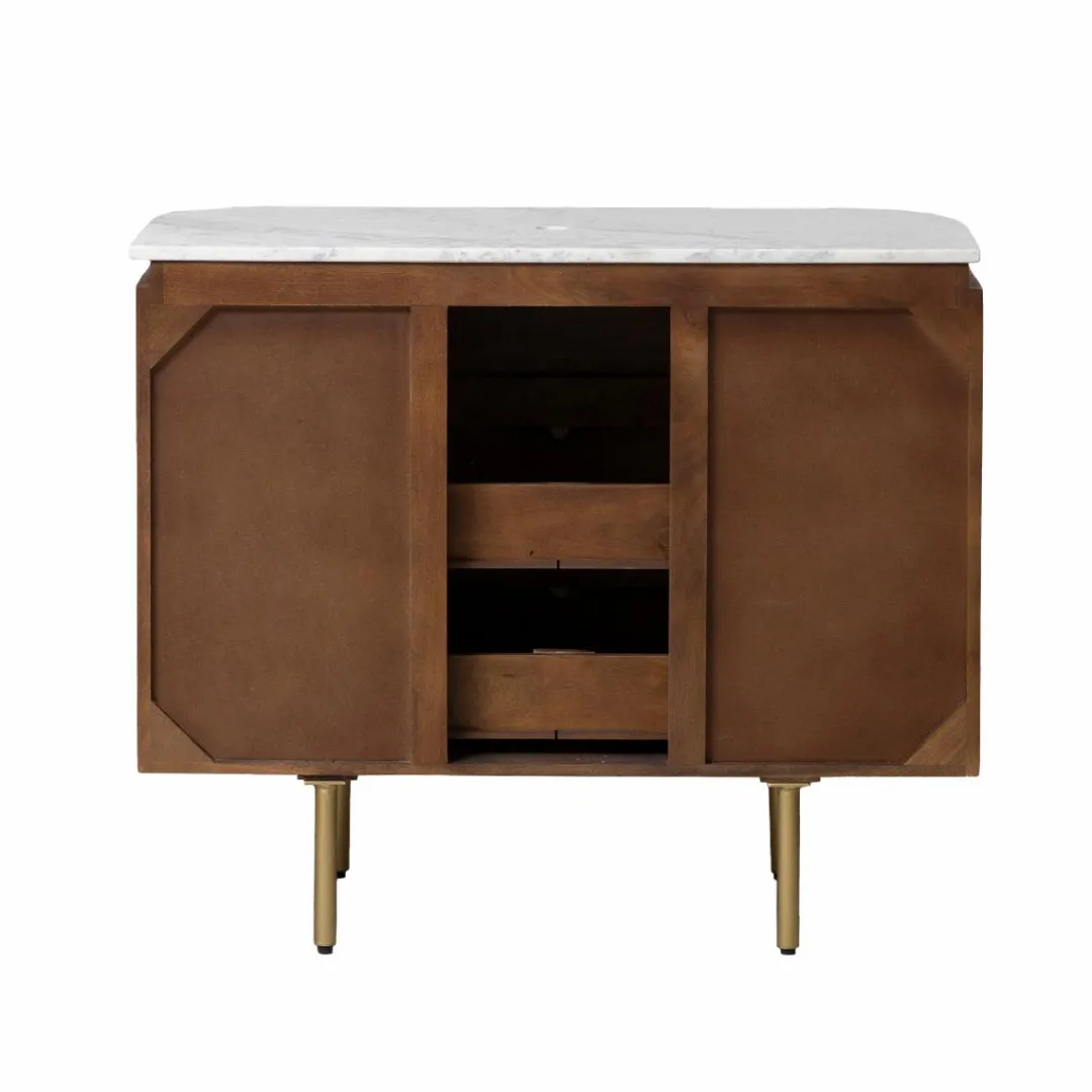 Le meuble sous vasque Sienne allie élégance et fonctionnalité grâce à son design raffiné et ses matériaux nobles. Fabriqué en bois de manguier massif, il se distingue par ses lignes épurées et son aspect chaleureux. Son plateau en marbre blanc apporte une touche sophistiquée et intemporelle, idéale pour sublimer une salle de bain moderne ou classique.