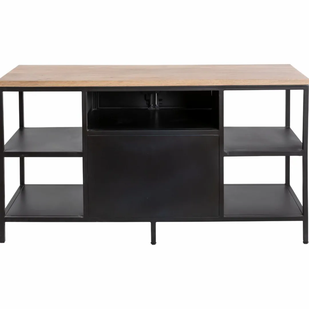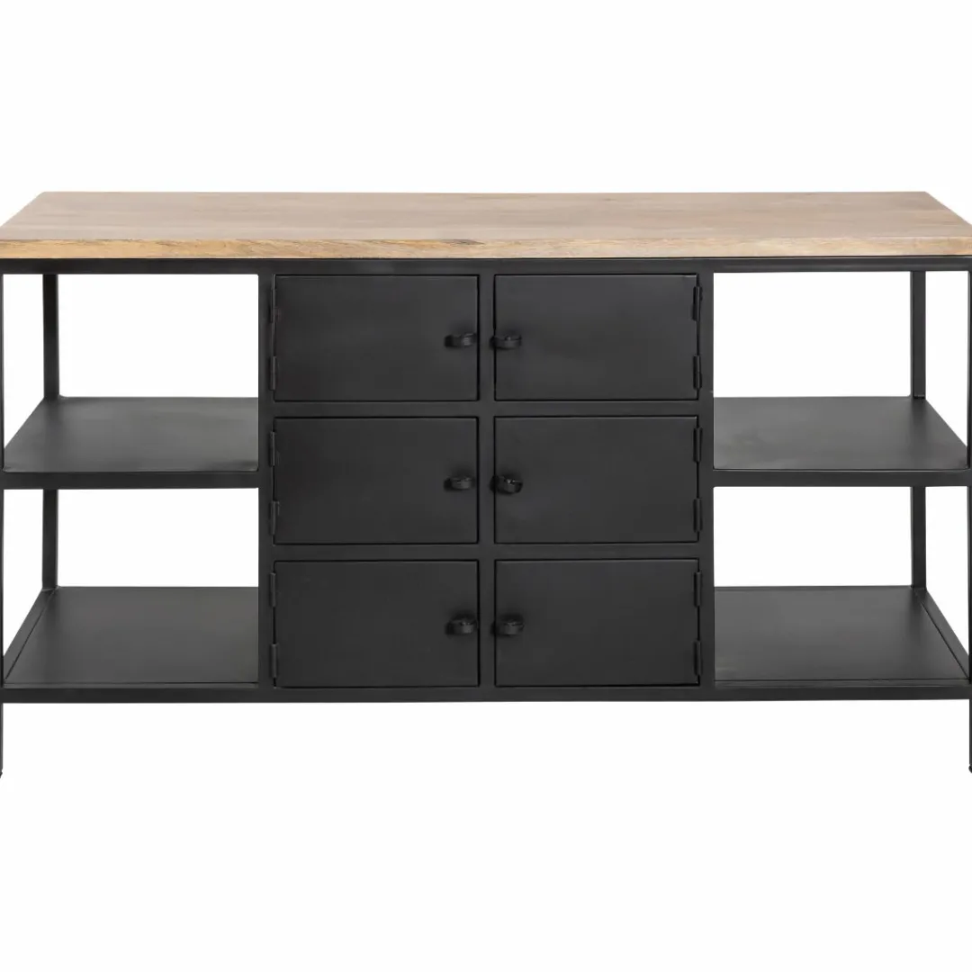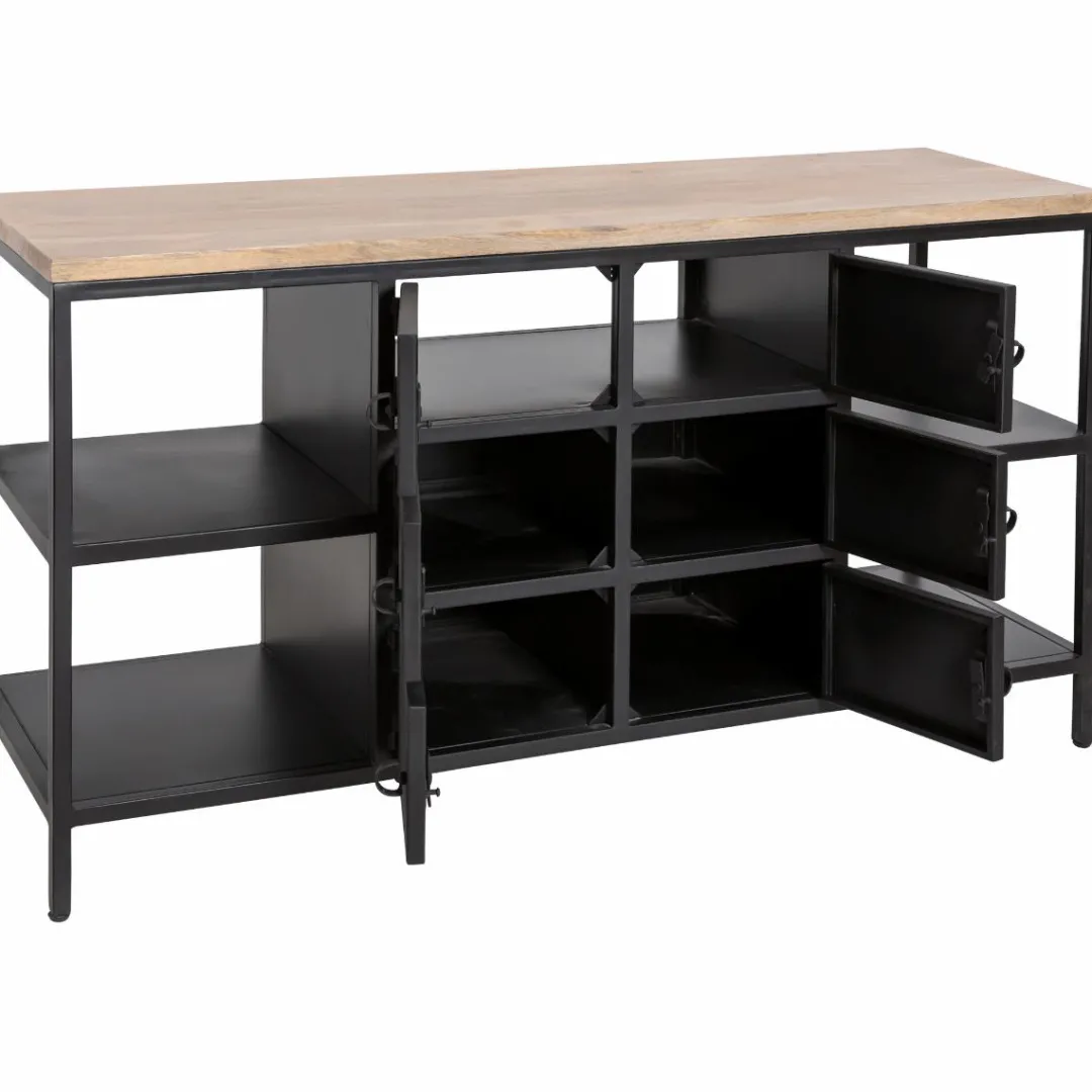 Boosté par un style propre à lui-même, ce meuble de salle de bain est porté par l’omniprésence de son métal. Ce matériau brut ajoutera une note de caractère à votre déco. On aime l’aspect lumineux de son plateau en manguier qui permet d’adoucir les traits de l’ensemble du meuble.