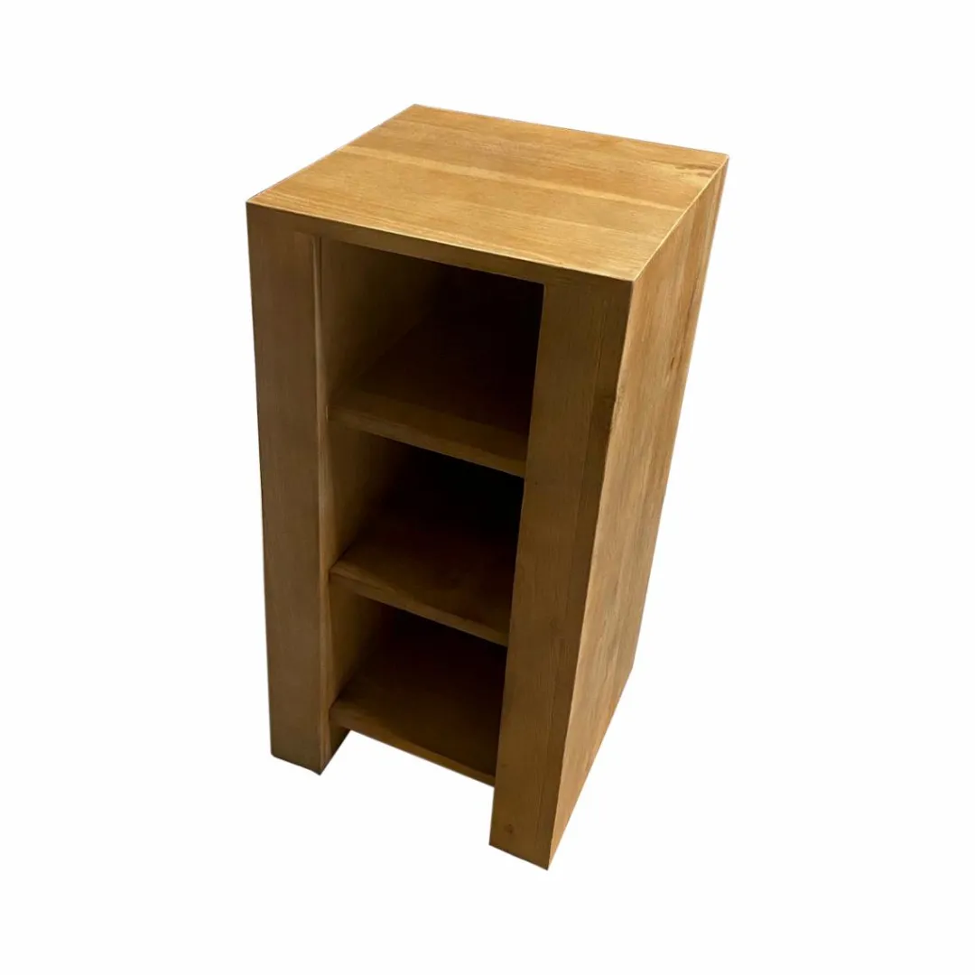 Passons aux présentations. Ce meuble de salle de bain a été pensé pour les petites salles de bain ou pour les salles de bains sous pentes parfois difficiles à aménager. Il va à l’essentiel en proposant trois étagères qui permettront de stocker et d’organiser le rangement de la salle de bain.