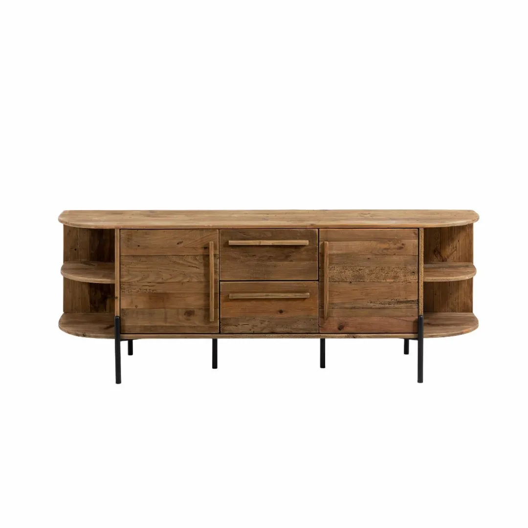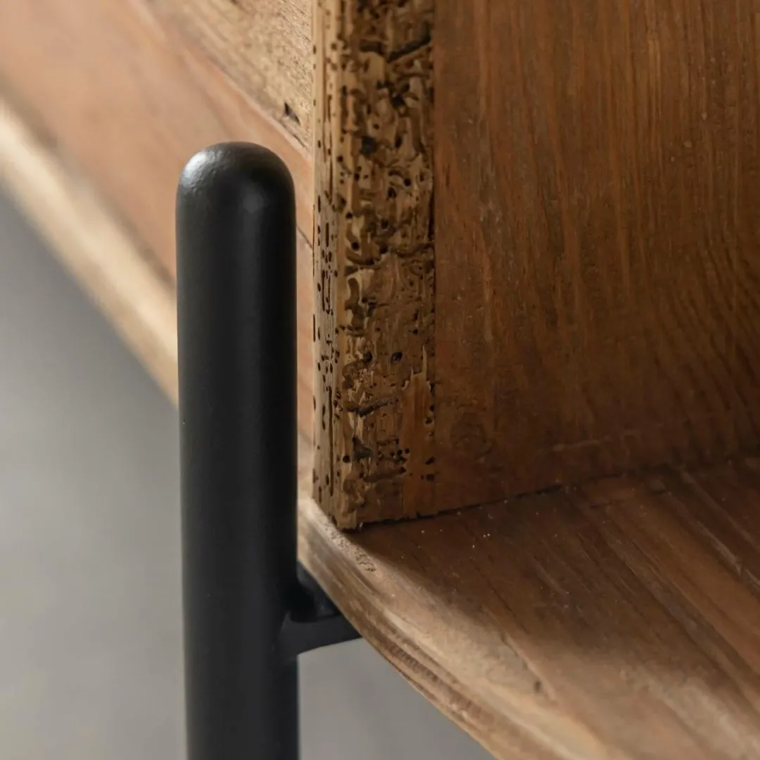 Issu de la collection Blaise, ce meuble TV en bois recyclé séduit par son design singulier, son charme authentique et la chaleur naturelle de sa matière. Conçu à partir de bois ancien soigneusement retravaillé, il conserve les marques du temps : veinures irrégulières, petites imperfections et nuances profondes qui rendent chaque meuble véritablement unique.