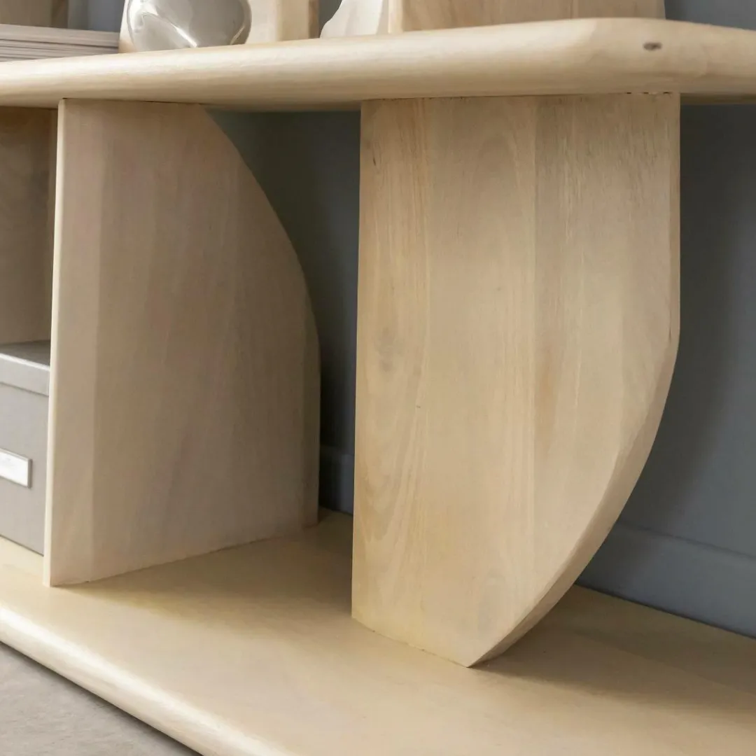 Fonctionnel, il dispose de plusieurs niches ouvertes permettant d’accueillir vos équipements multimédias, vos consoles ou encore des objets déco. Sa structure ajourée lui confère une légèreté visuelle tout en offrant une belle capacité de rangement. Ce meuble TV combine ainsi authenticité, originalité et praticité pour devenir une pièce maîtresse de votre séjour.