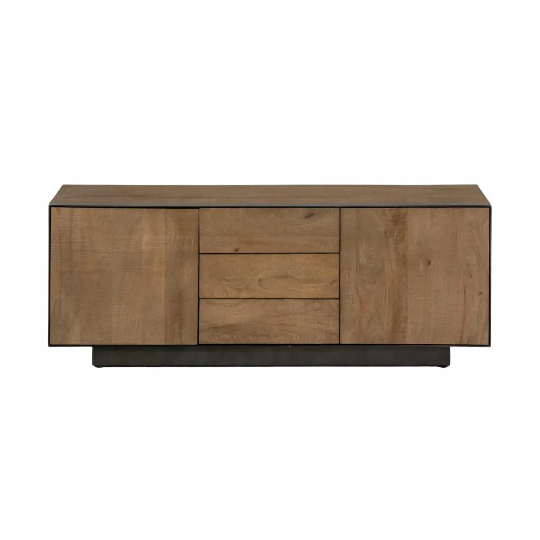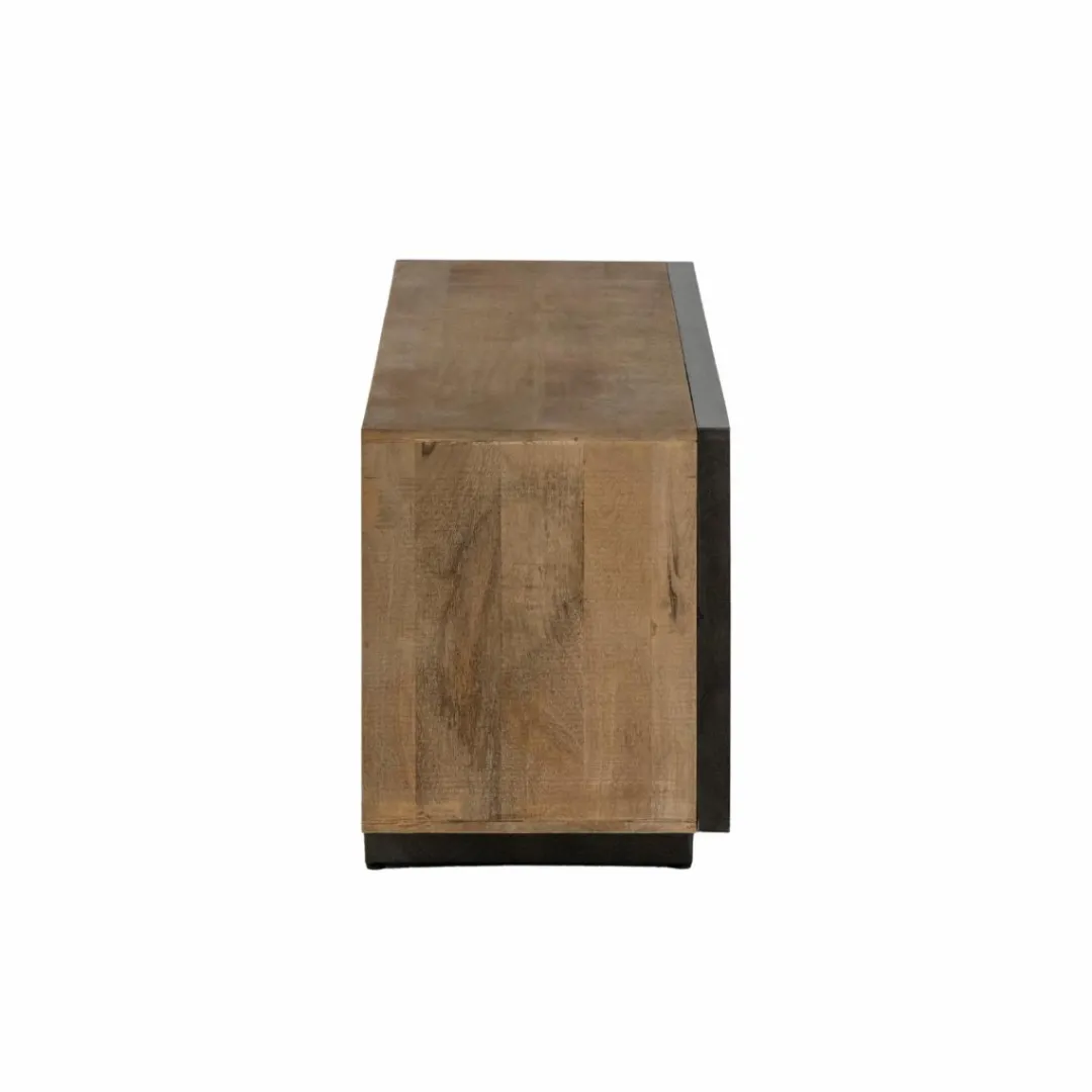 Faites place à l’authenticité avec le meuble TV en bois de manguier et métal de la collection Isil. Ce meuble allie la chaleur du bois massif à la robustesse du métal noir pour créer un style résolument industriel. Son design linéaire et équilibré s’adapte aussi bien à une décoration brute qu’à un intérieur plus contemporain. Le veinage du bois de manguier apporte du relief et du caractère, chaque pièce étant unique par sa teinte et ses motifs naturels.