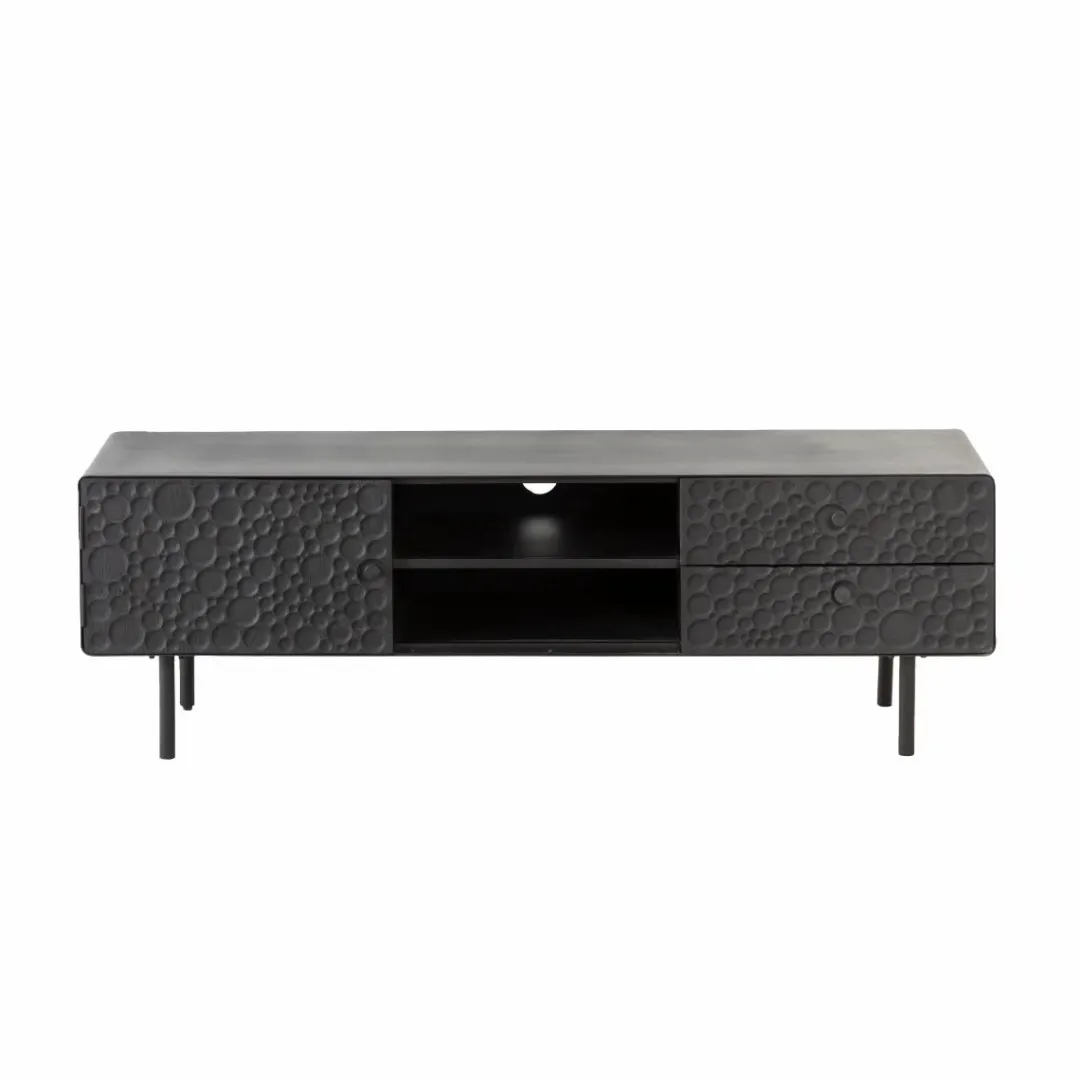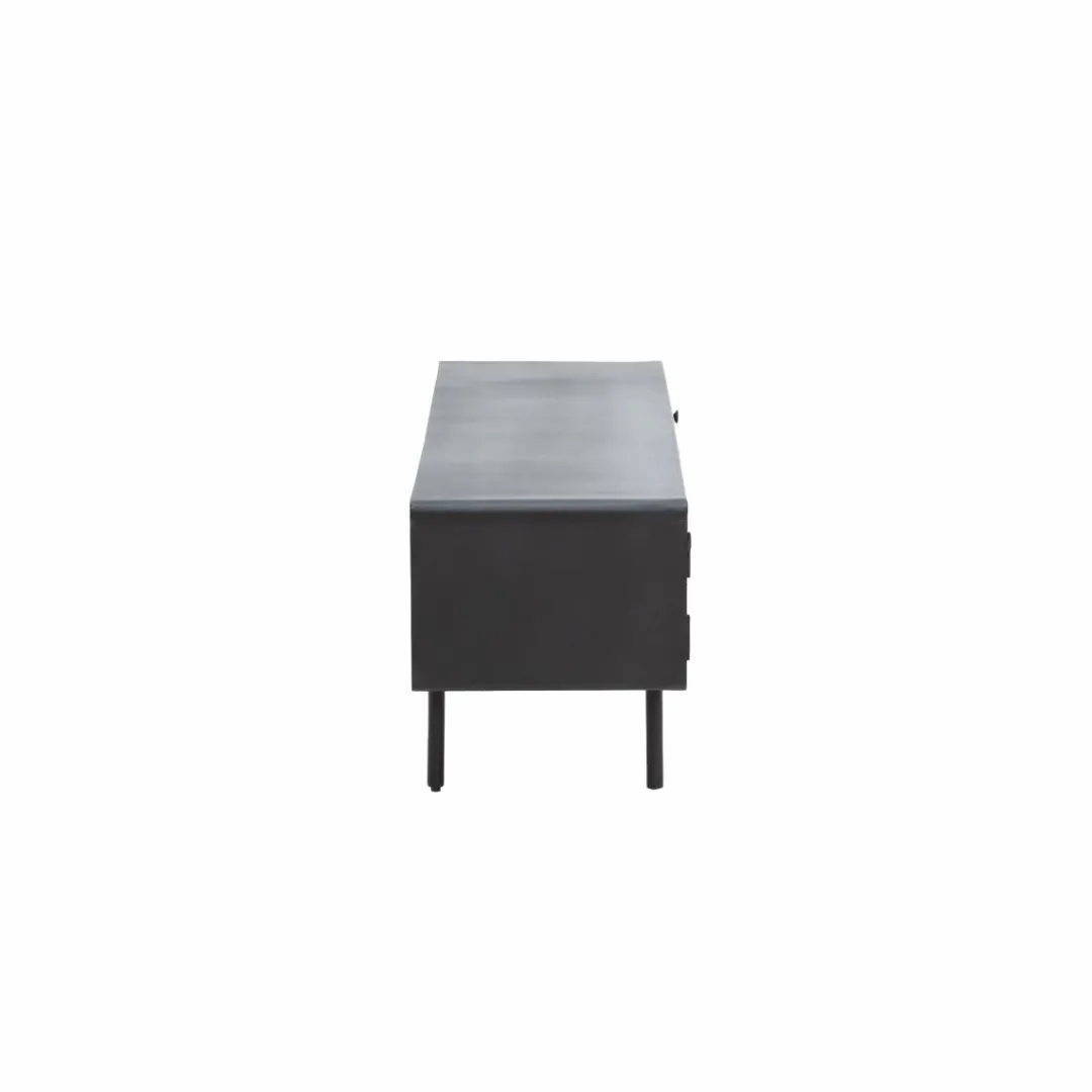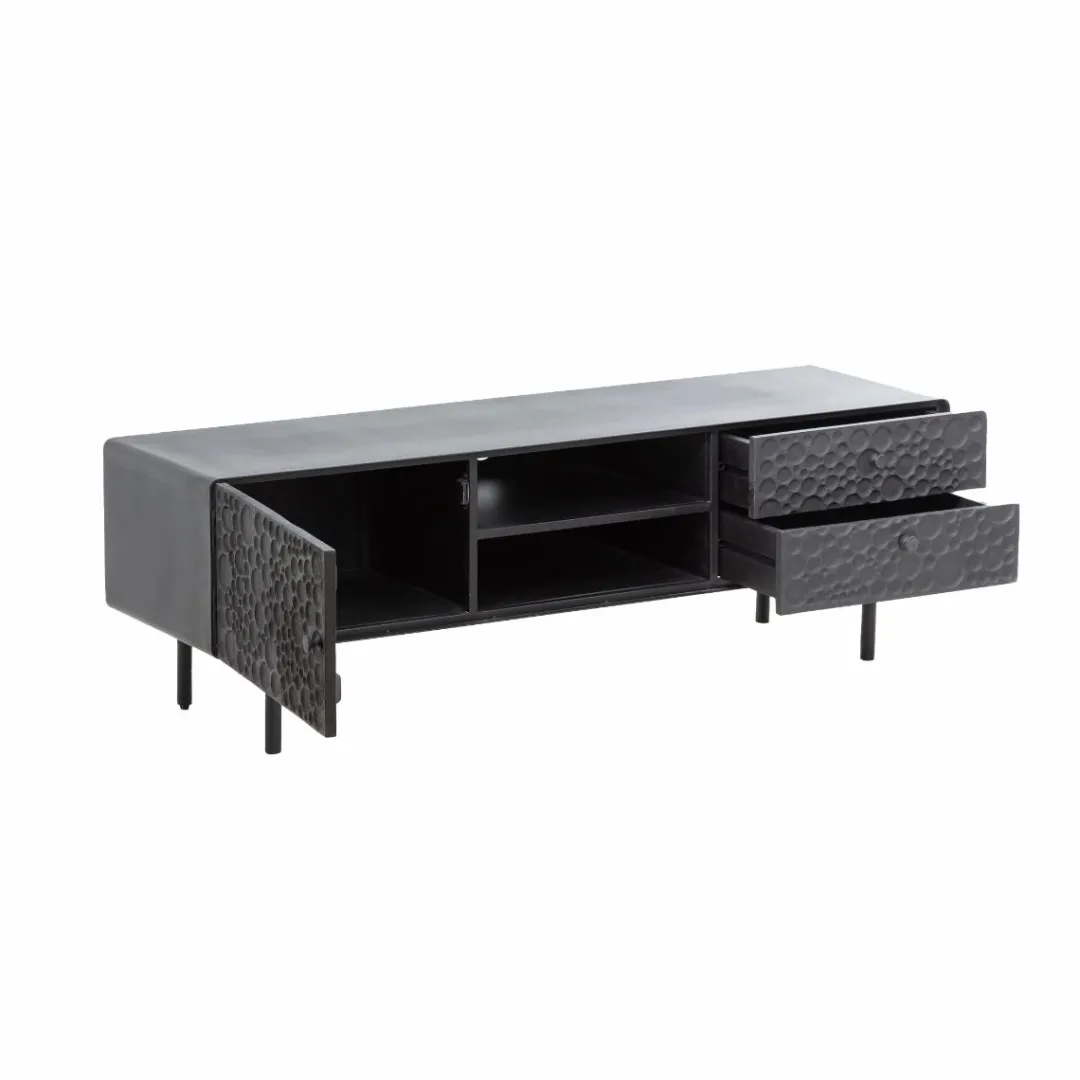 Ce magnifique meuble est fabriqué en bois de manguier robuste, associé à des cadres en acier modernes qui ont été finis dans un noir saisissant. Ainsi, vous obtenez non seulement un meuble esthétique, mais aussi un meuble qui offre des options de rangement fiables et pratiques. Il possède des tiroirs spacieux, idéal pour les objets indispensables que l’on veut avoir à portée de main. La surface supérieure offre suffisamment d’espace pour accueillir des téléviseurs jusqu’à 70 pouces, ainsi que d’autres appareils numériques.