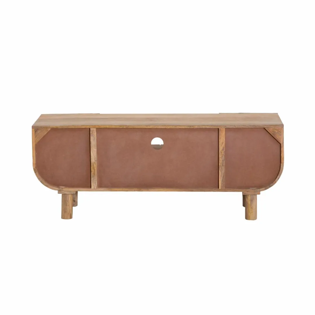 Le meuble TV Loëvan est un meuble emblématique qui met en valeur la beauté et la polyvalence du bois de manguier. Le design intemporel présente une forme classique avec des portes arrondies, créant un look délicat mais accrocheur. L’effet baguette ajoute au charme esthétique, faisant de ce meuble un complément attrayant à tout espace de vie.