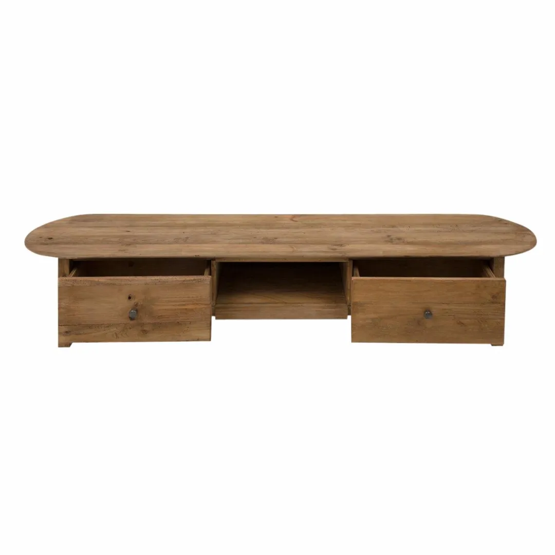 Ce meuble TV en bois massif propose 2 tiroirs où vous pouvez ranger de manière organisée vos objets du quotidien et/ou vos DVD, bouquins… Quant à sa niche, elle vous permettra de disposer vos lecteurs et consoles. Son large plateau, quant à lui, sera sublimé par des accessoires de décoration.